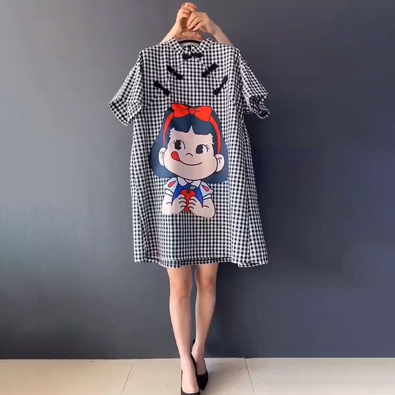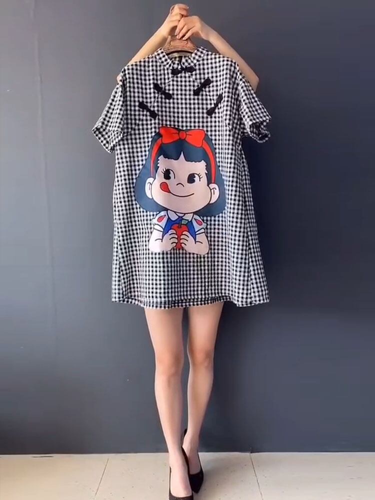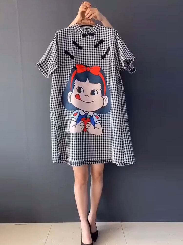 スタイルスタンダード自然派ブラックホワイト格子柄バックルスカート レトロ 大きめサイズ ミックスインファッション38843563497