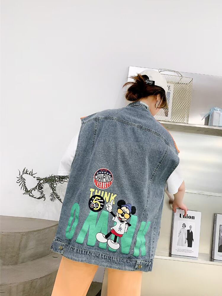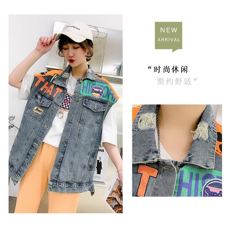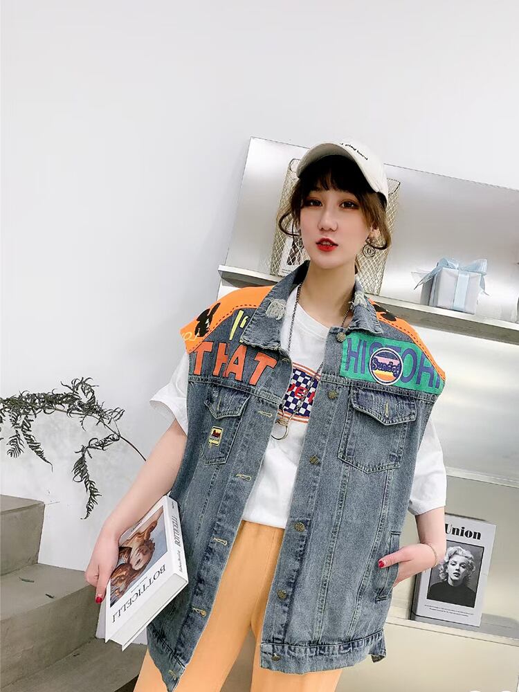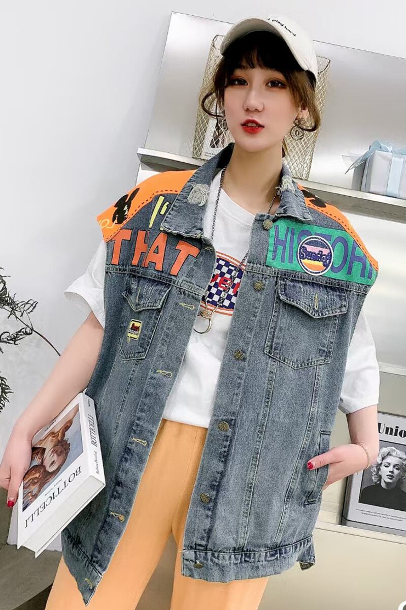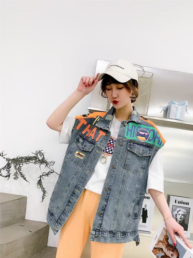 スプリングプリントノースリーブカジュアルルーズジャケット レディース 春物 ミックスインファッション39818722779