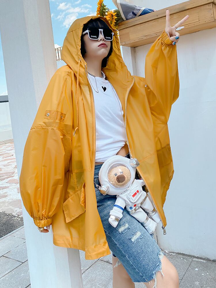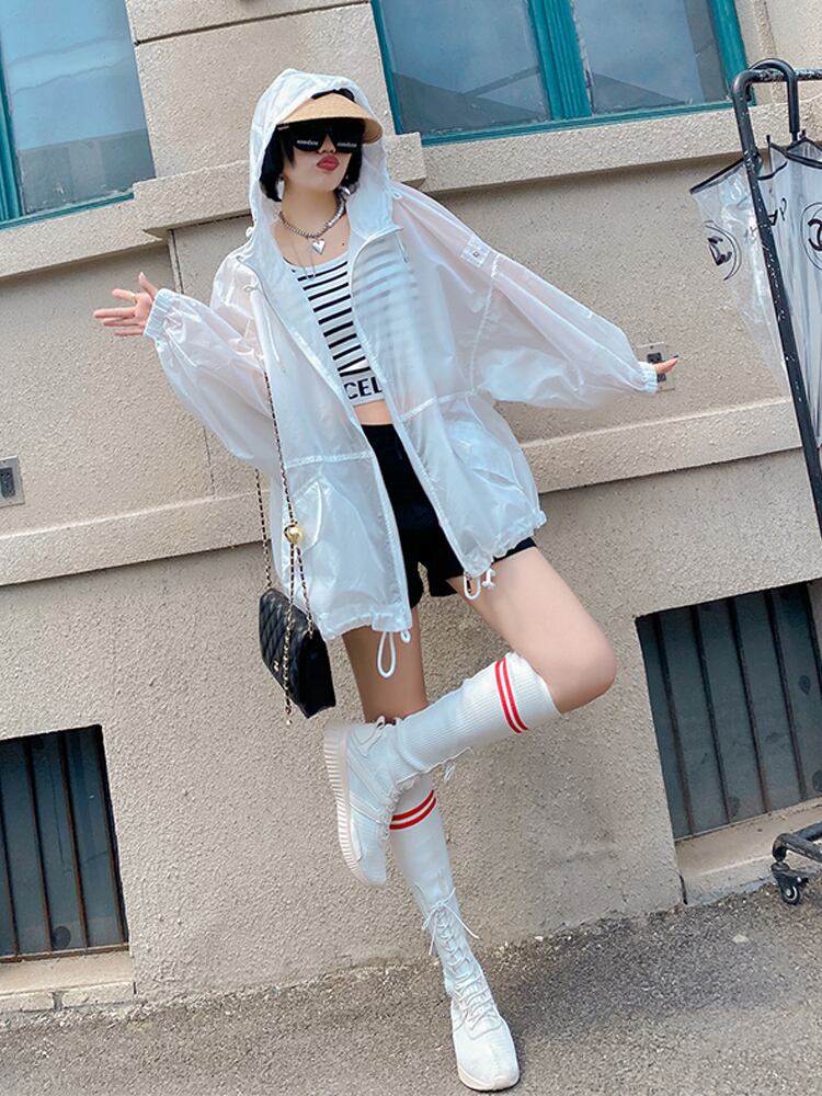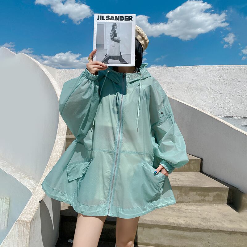 カジュアルサマールーズAラインフードジャケット ロング 大きめサイズ 夏物 ミックスインファッション3863578144