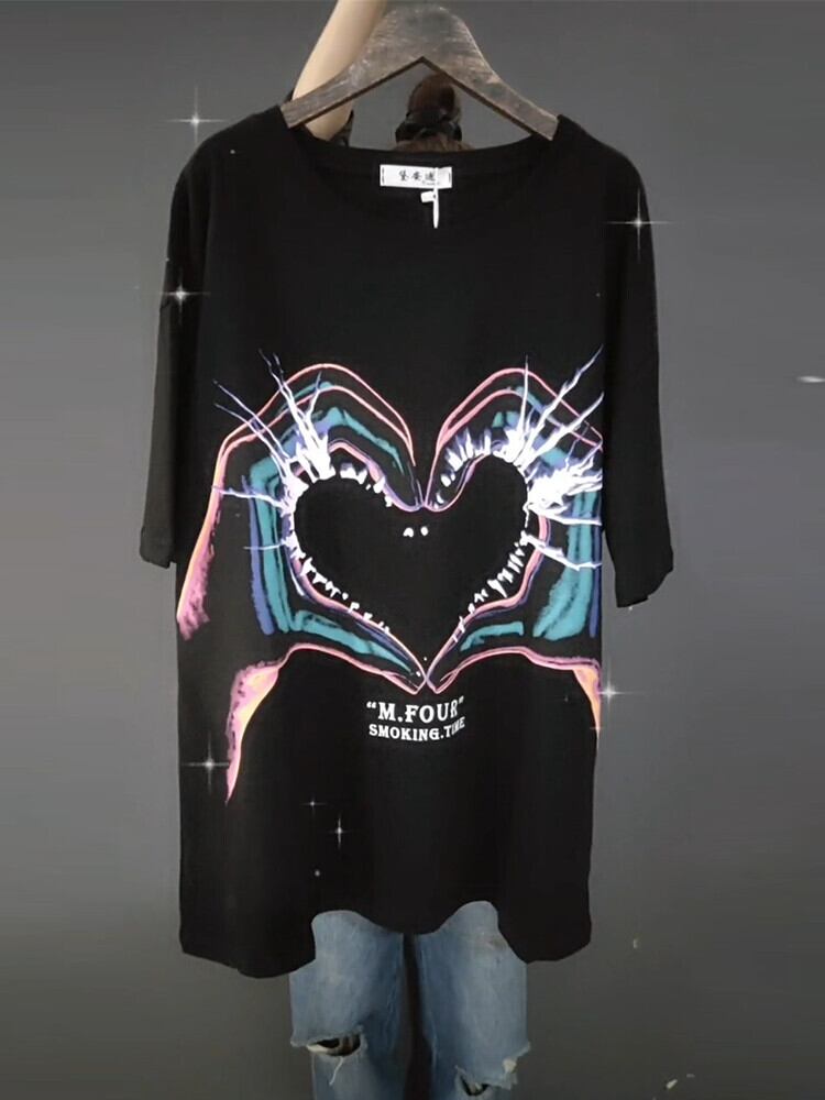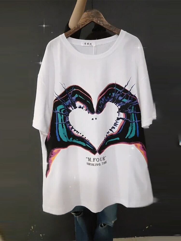 スタイルラウンドネックプリントルーズカジュアルTシャツ ストリート Oネック ミックスインファッション35881314004