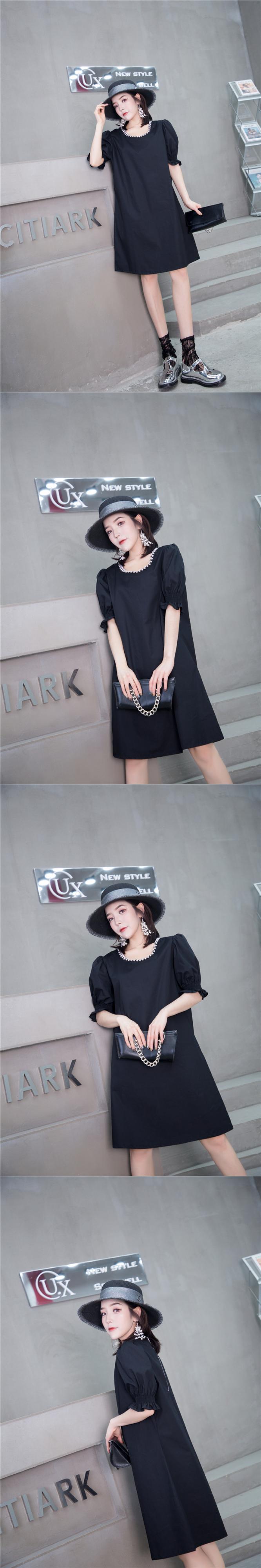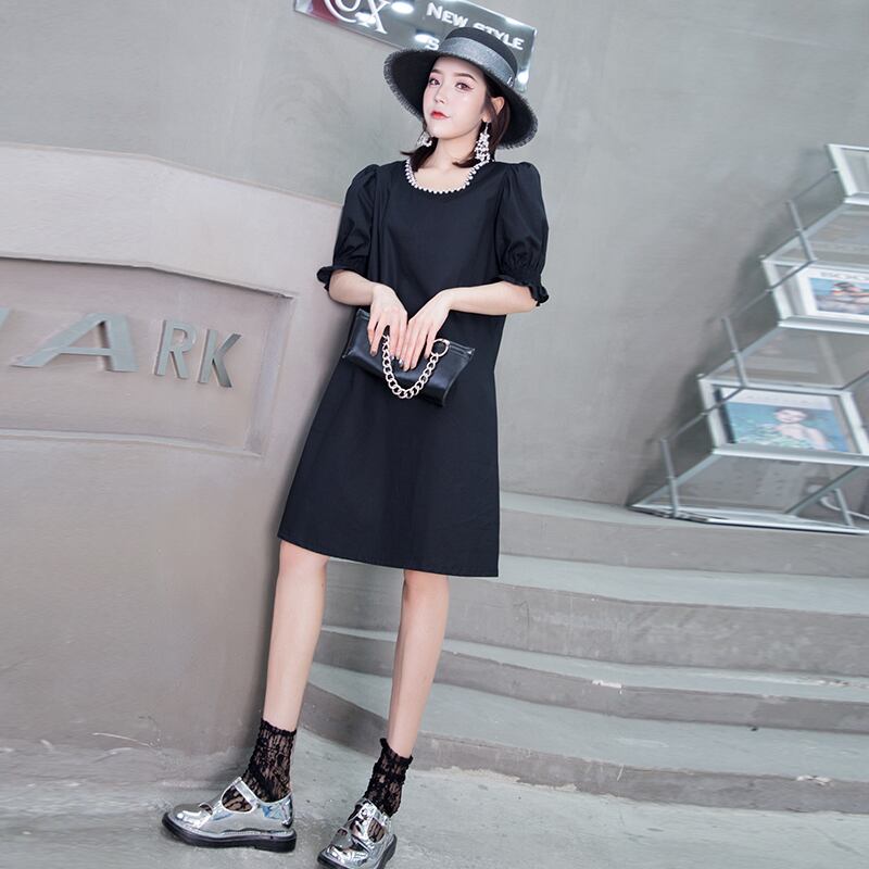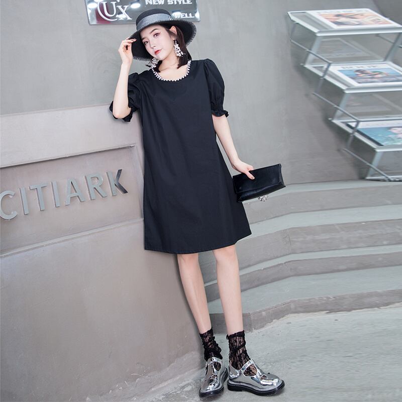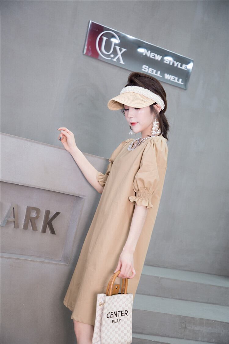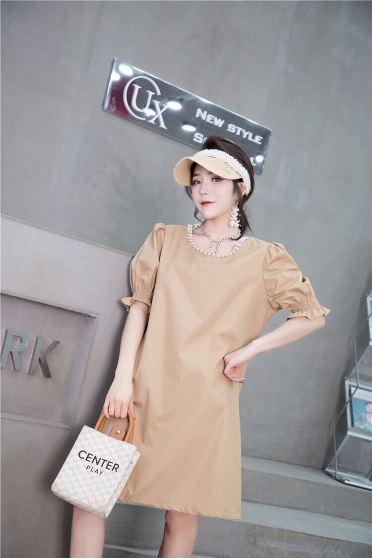 サマードレス スリーブルーズ薄手スカート ランタンスリーブ 大きめサイズ 夏物 ミックスインファッション73044100846