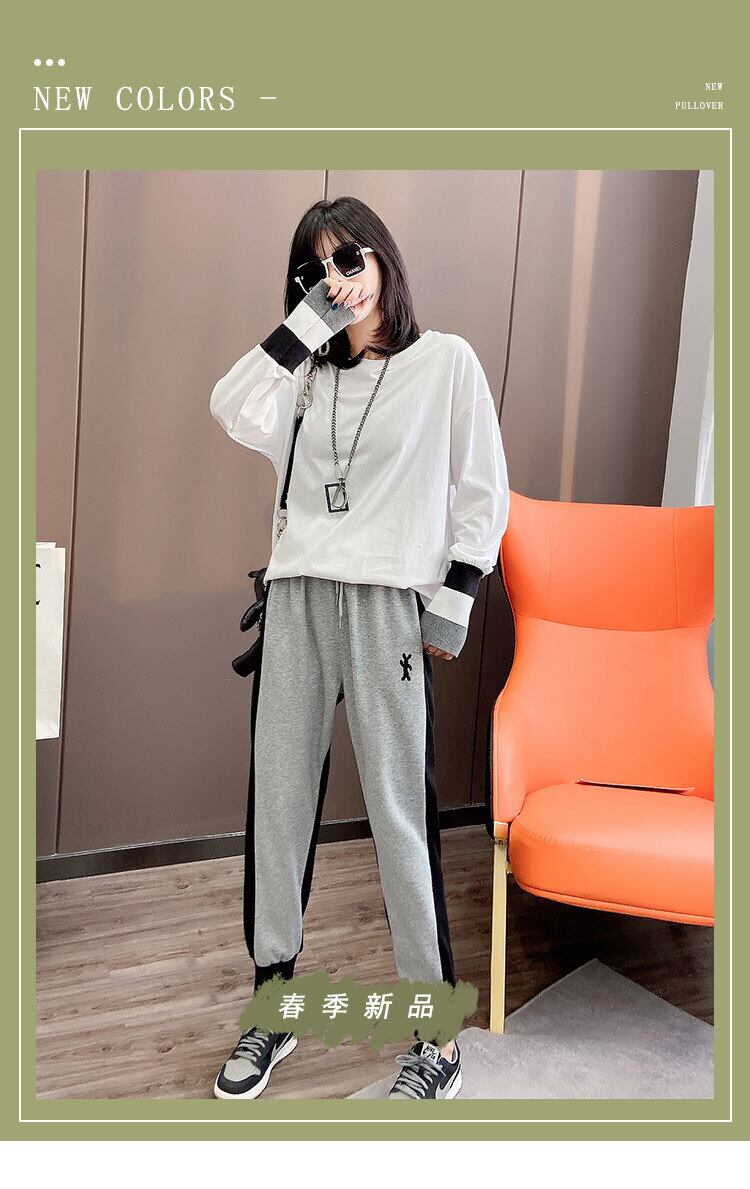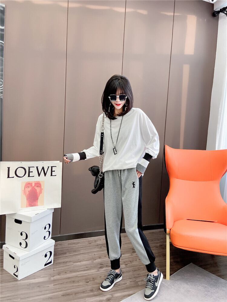 スプリングTシャツ シャツ ルーズカラーカジュアルパンツ ロング 春物 ミックスインファッション84000443674