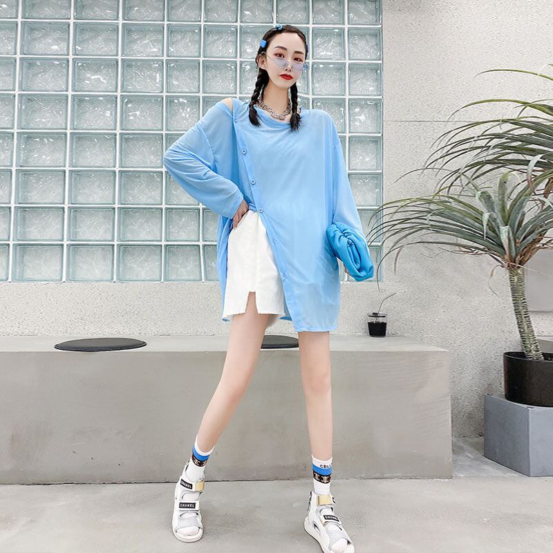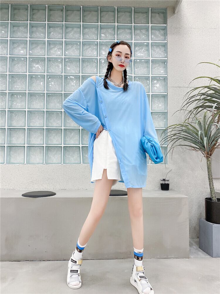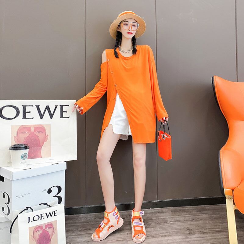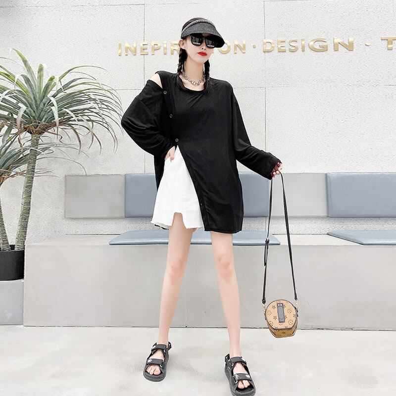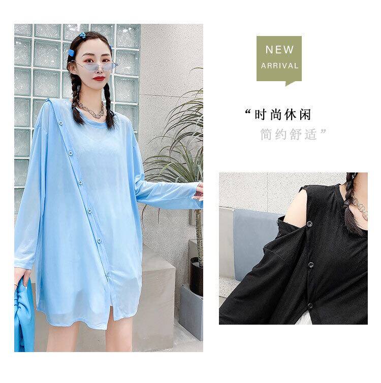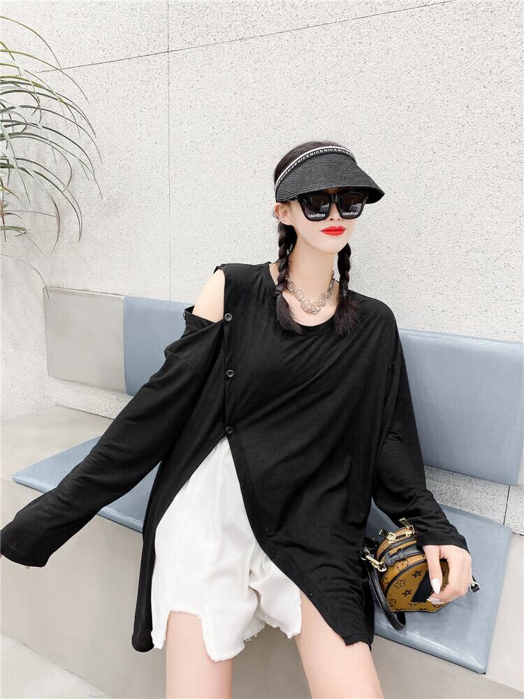 サマースタンダードラウンドネックルーズストラップレストップス ロング レトロ 大きめサイズ 夏物 Oネック ミックスインファッション42546752295
