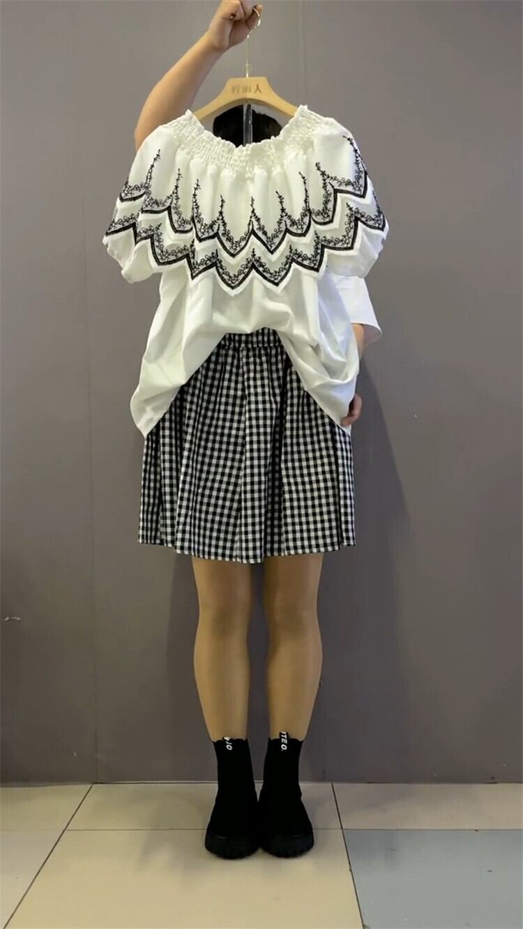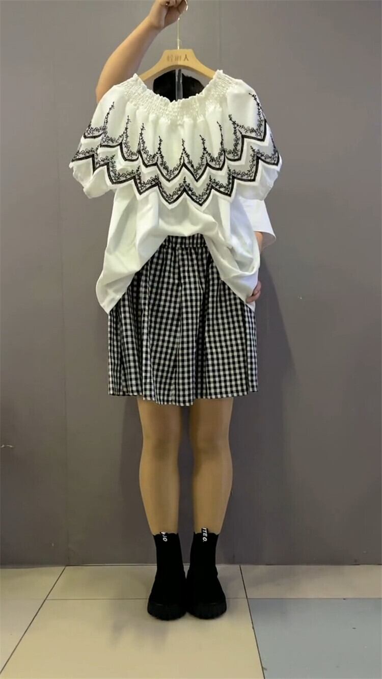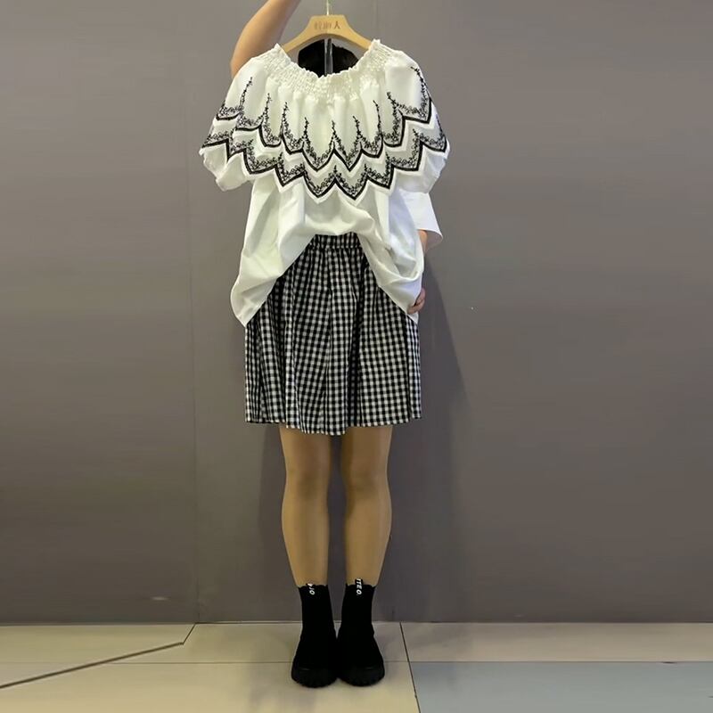 ストレッチレーストップス 格子柄ショーツ エラスティック 伸縮 大きめサイズ ブルマー ステッチ ミックスインファッション27142497382