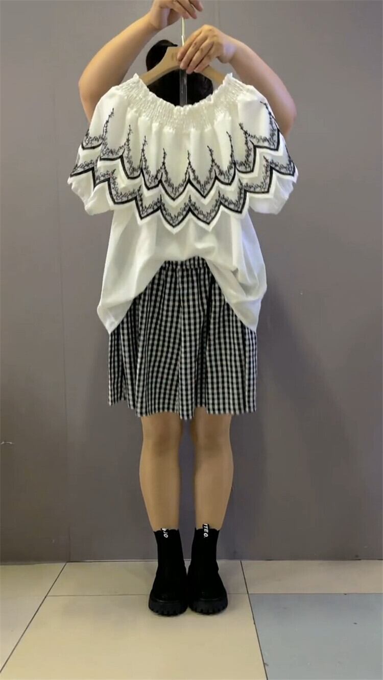 色:ホワイトTチェックパンツツーピーススーツ