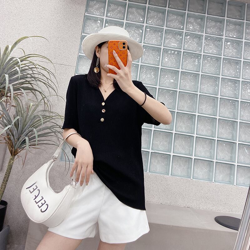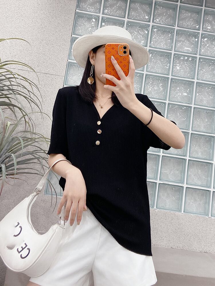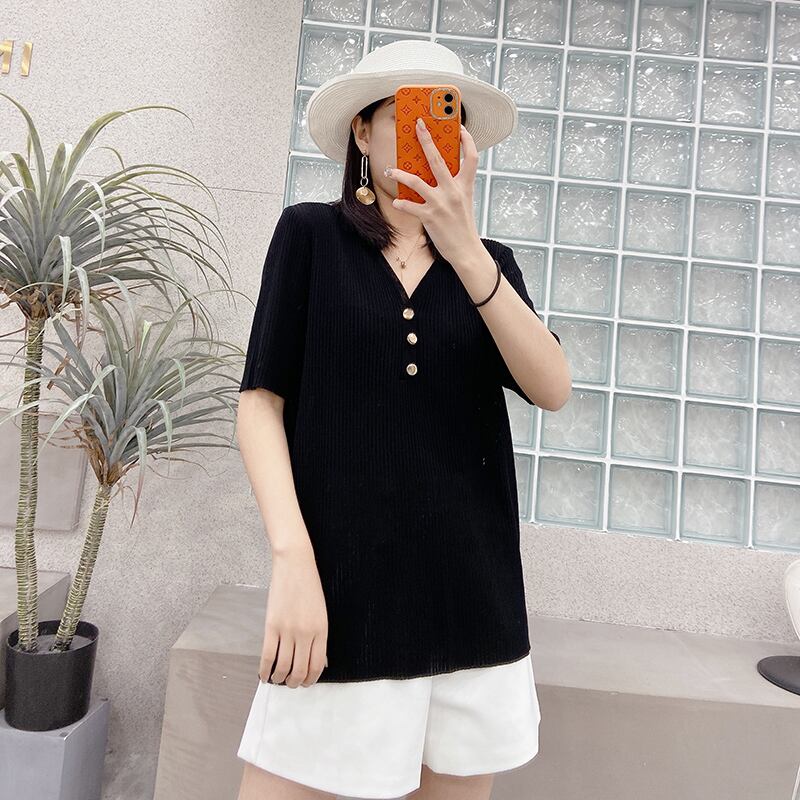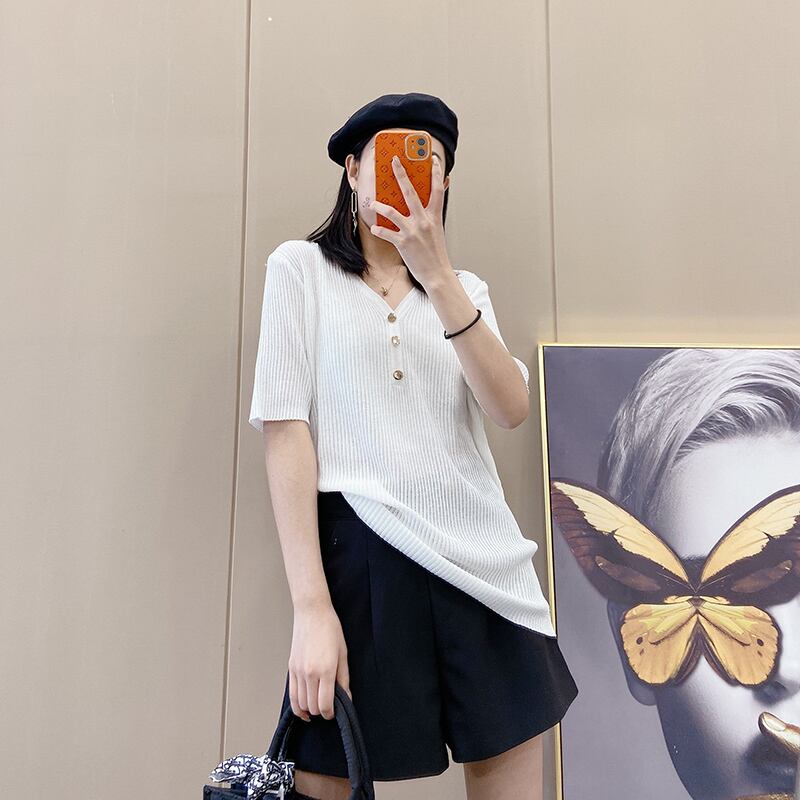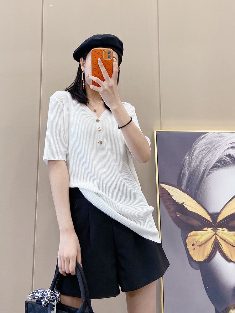 VネックストライプTシャツ サマー薄手ニットトップス 大きめサイズ 夏物 ミックスインファッション85752896994