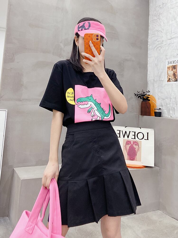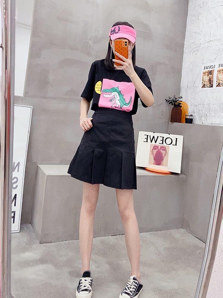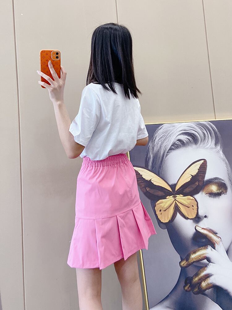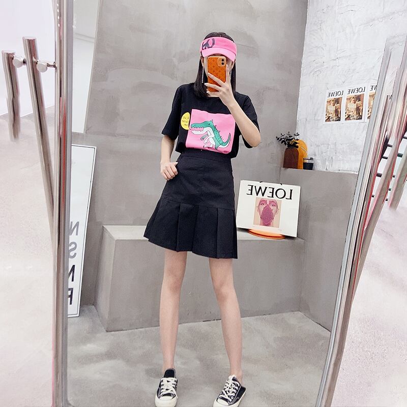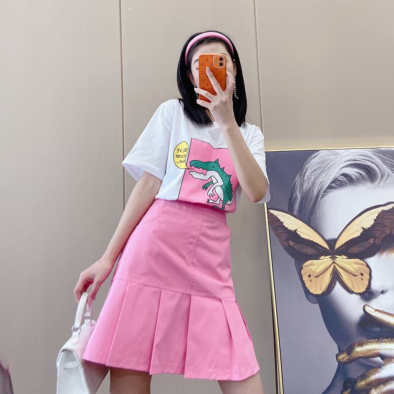 サマーTシャツ ルーズスリムトップス スカート 大きめサイズ 夏物 ミックスインファッション43594010291
