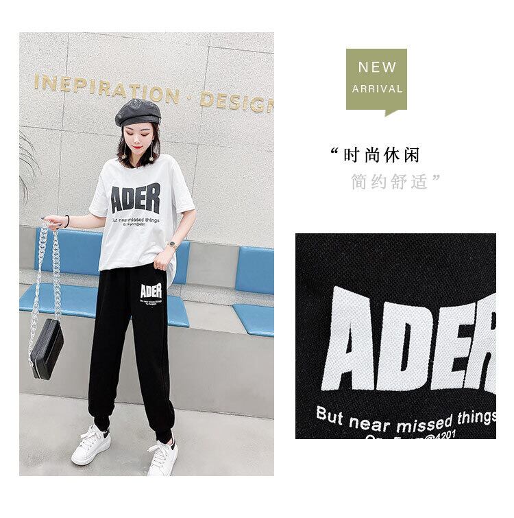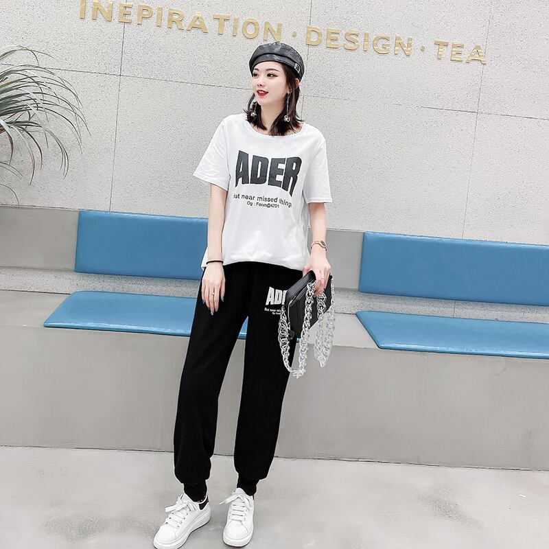 スプリングシャツ レディースホワイトTシャツ ラウンドネックショートトップス カジュアルパンツ 大きめサイズ 春物 Oネック ミックスインファッション9370047556