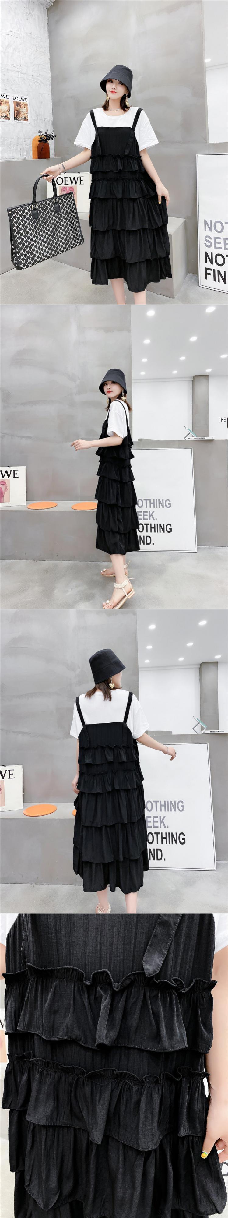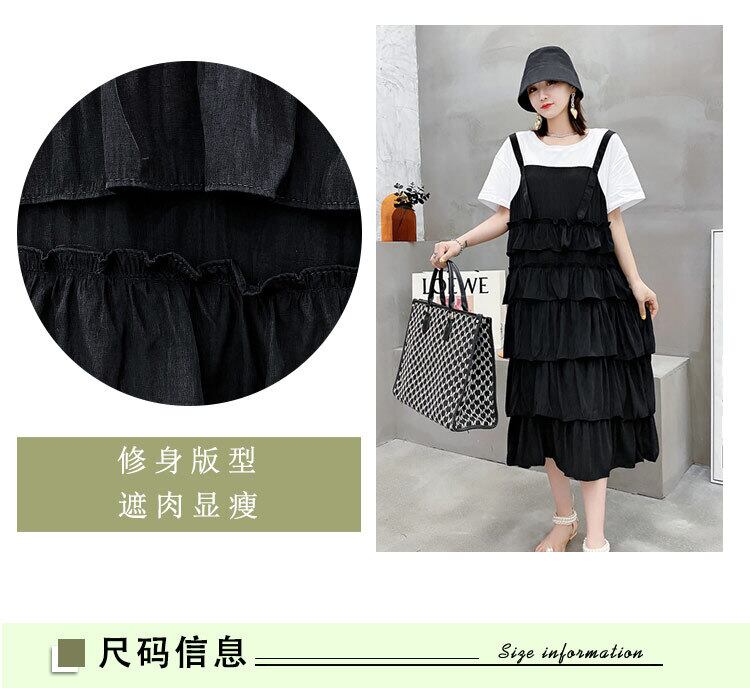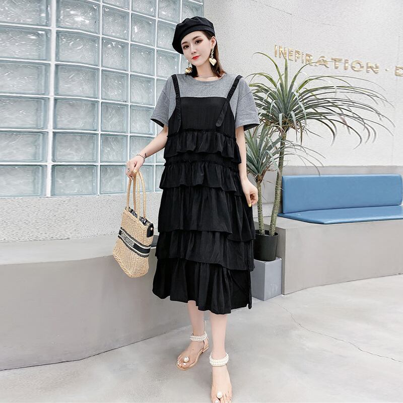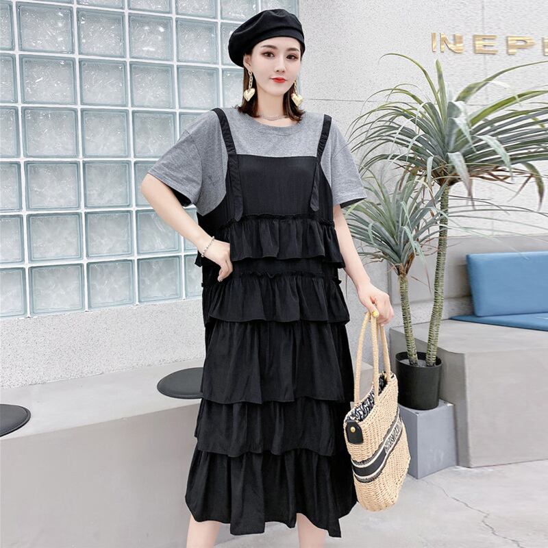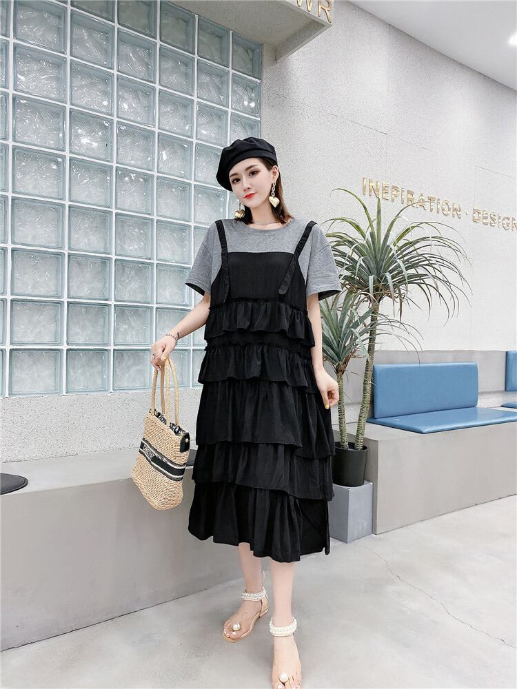 サマーラウンドネックTシャツ ドレス 大きめサイズ 夏物 Oネック ミックスインファッション33792512172