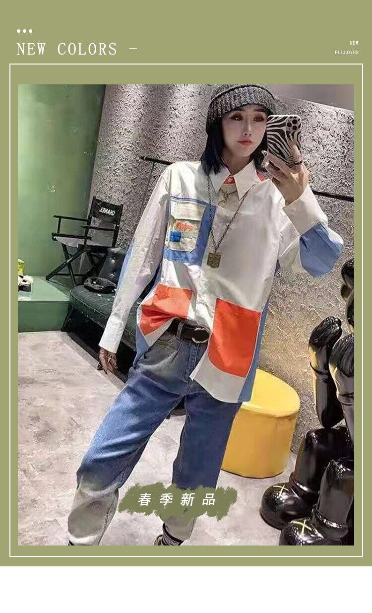 スタンダードシャツ オータムウィンタースタイルトップス シャツ ロング レトロ 秋物 冬物 ミックスインファッション76617724274