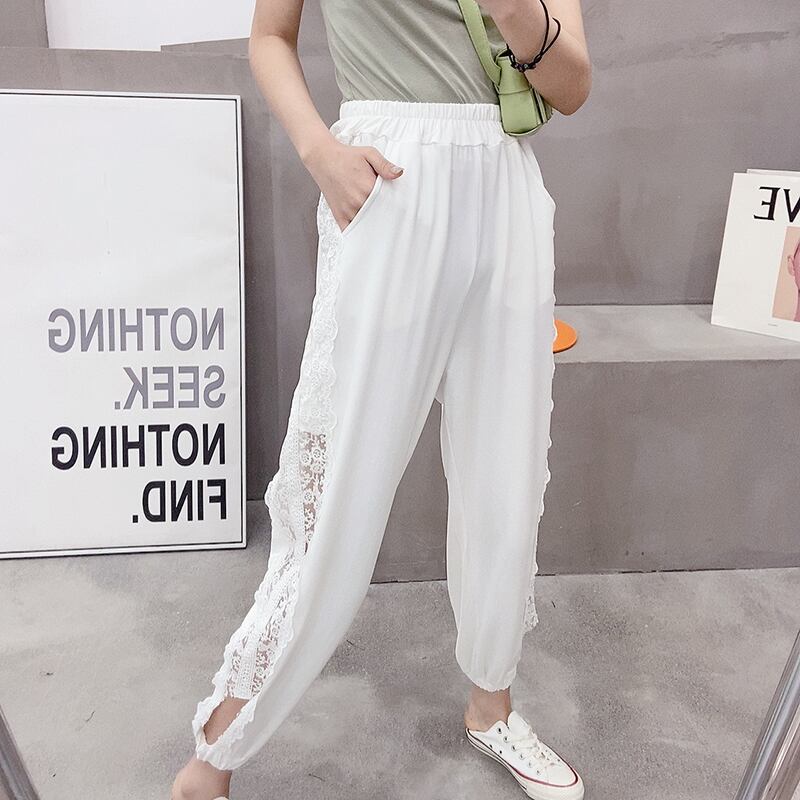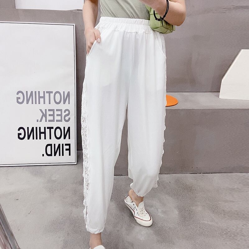 パンツ ストレッチウェストレースカジュアル薄手ルーズスプリング エラスティック 伸縮 大きめサイズ 春物 ミックスインファッション30204799059