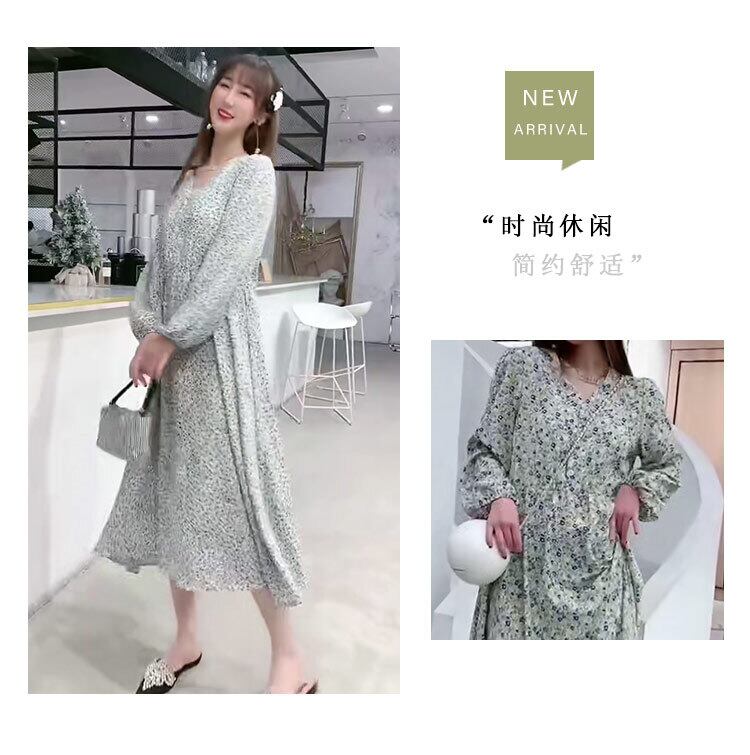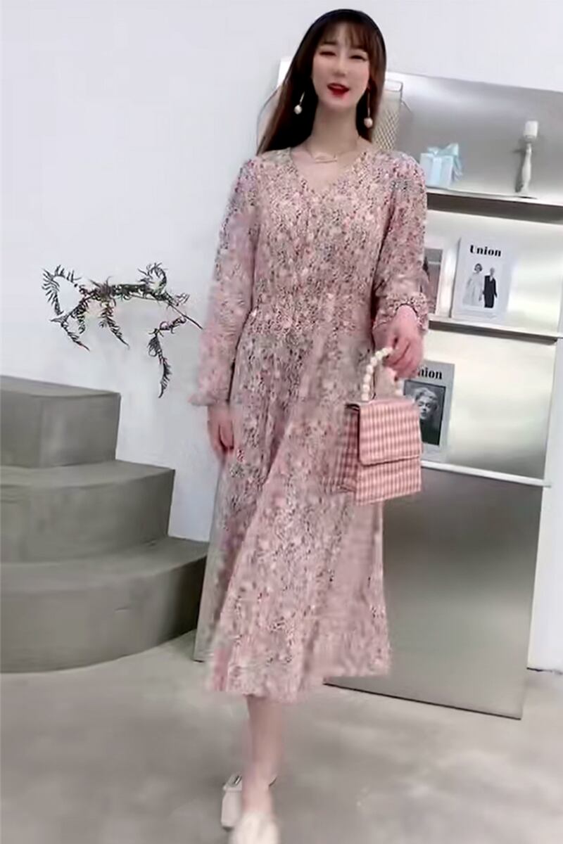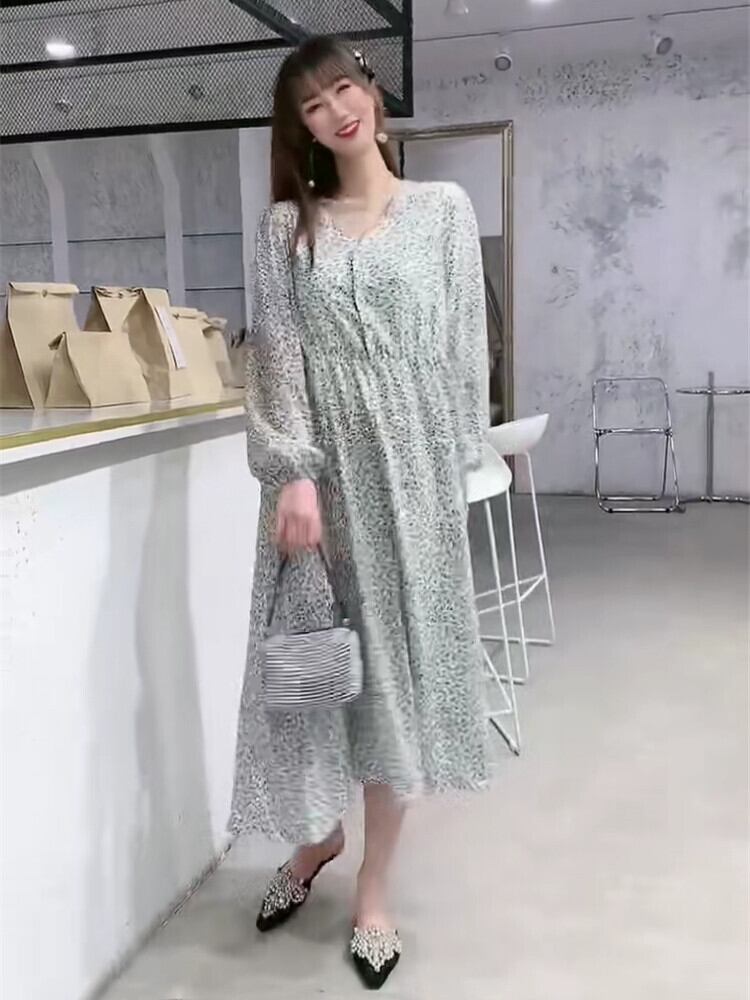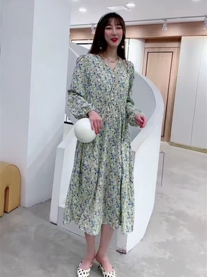 スプリングスリーブスカート スタイルフローラルドレス ランタンスリーブ 大きめサイズ 春物 花柄 ミックスインファッション58200539881