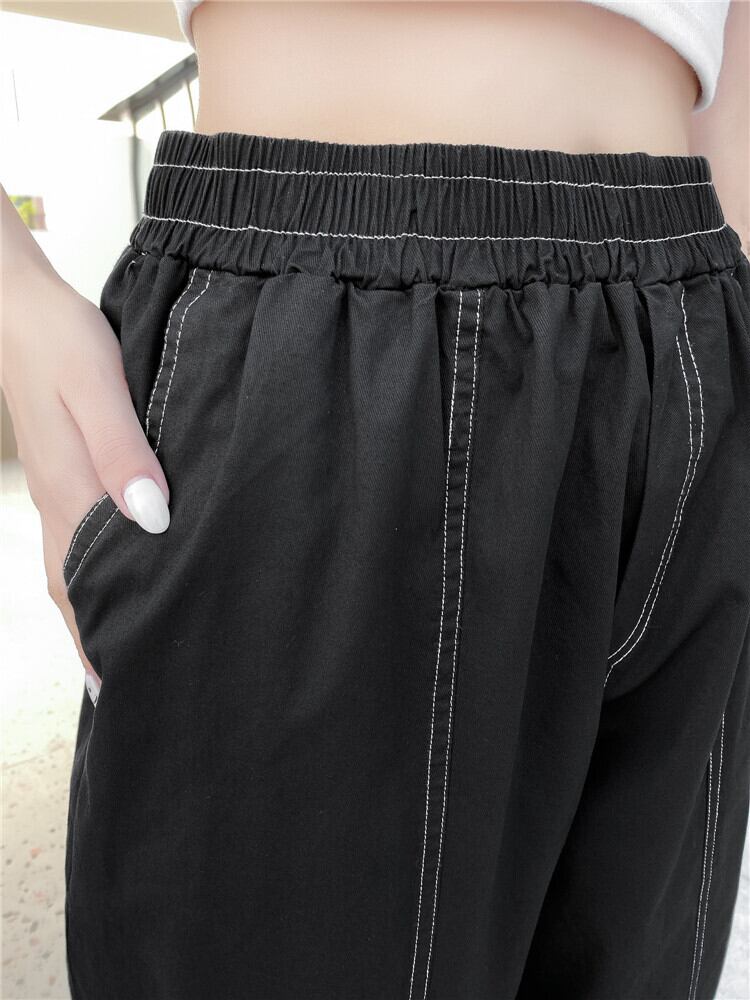 ストレッチウェストルーズカジュアルスプリングサマークロップド エラスティック 伸縮 大きめサイズ 春物 夏物 ミックスインファッション82862456371