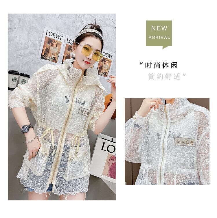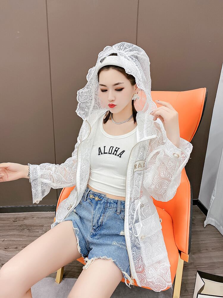 ルーズカジュアルフードジッパーレースジャケット ロング 長袖 大きめサイズ ミックスインファッション74088772570