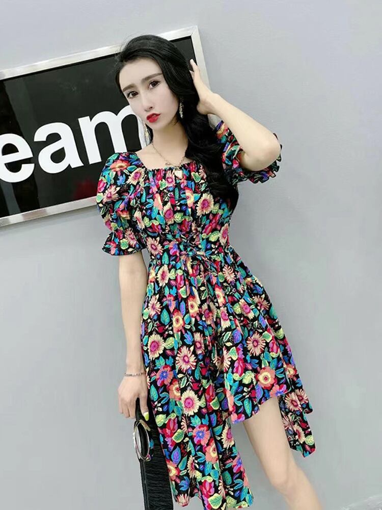 サマードレス フローラルルーズロング 大きめサイズ 大人ガーリー スウィート キュート カジュアル 夏物 花柄 スカート ミックスインファッション52587067868