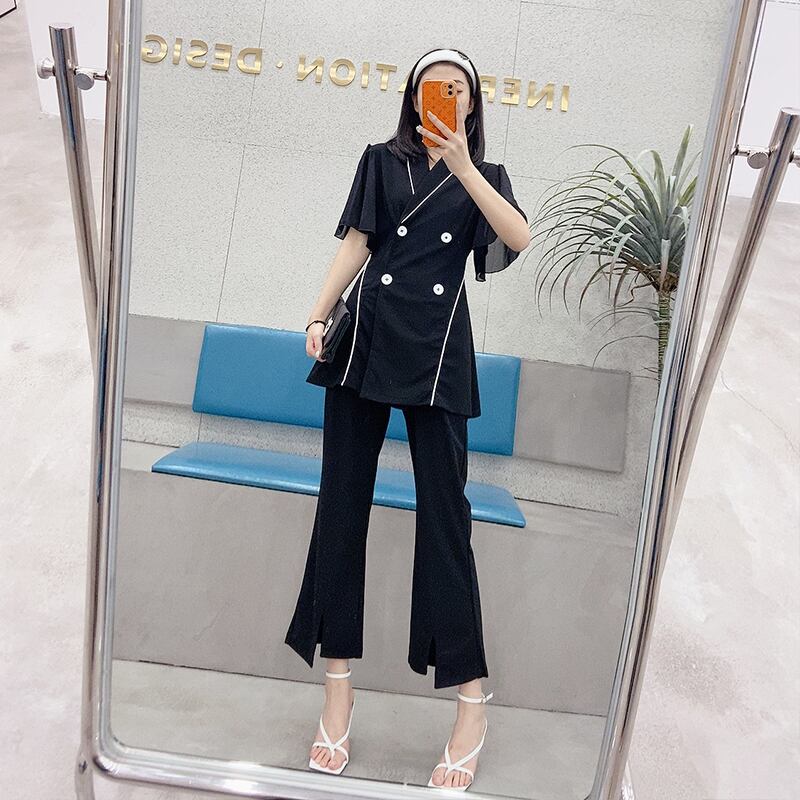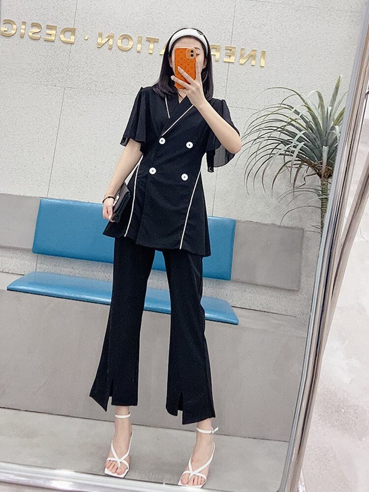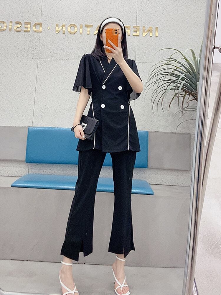 ダブルブレストシフォンスリーブジャケット ウェストパンツ セット レッド 大きめサイズ ミックスインファッション70431518270