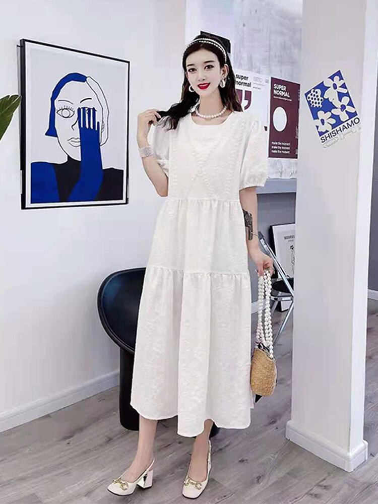 サマースタイルルーズドレス スカート 大きめサイズ 夏物 ミックスインファッション20589752306