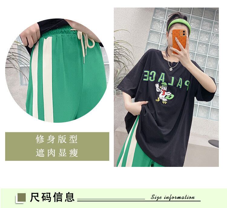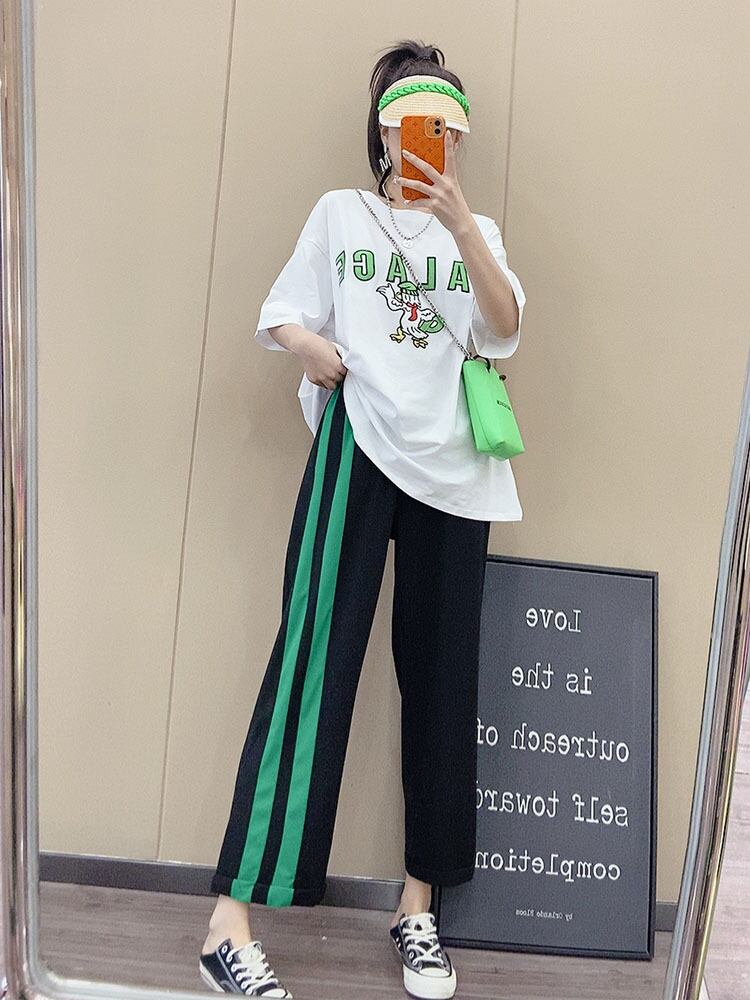 プリント柄ラウンドネックTシャツ ルーズダブルパンツ 大きめサイズ Oネック ミックスインファッション87147025218