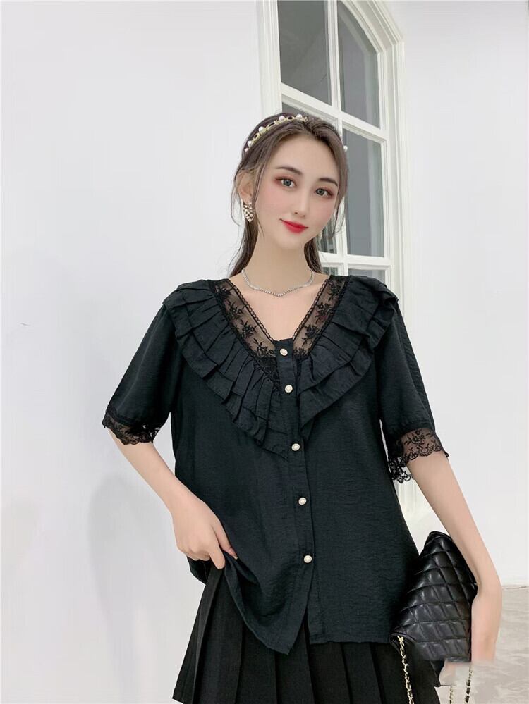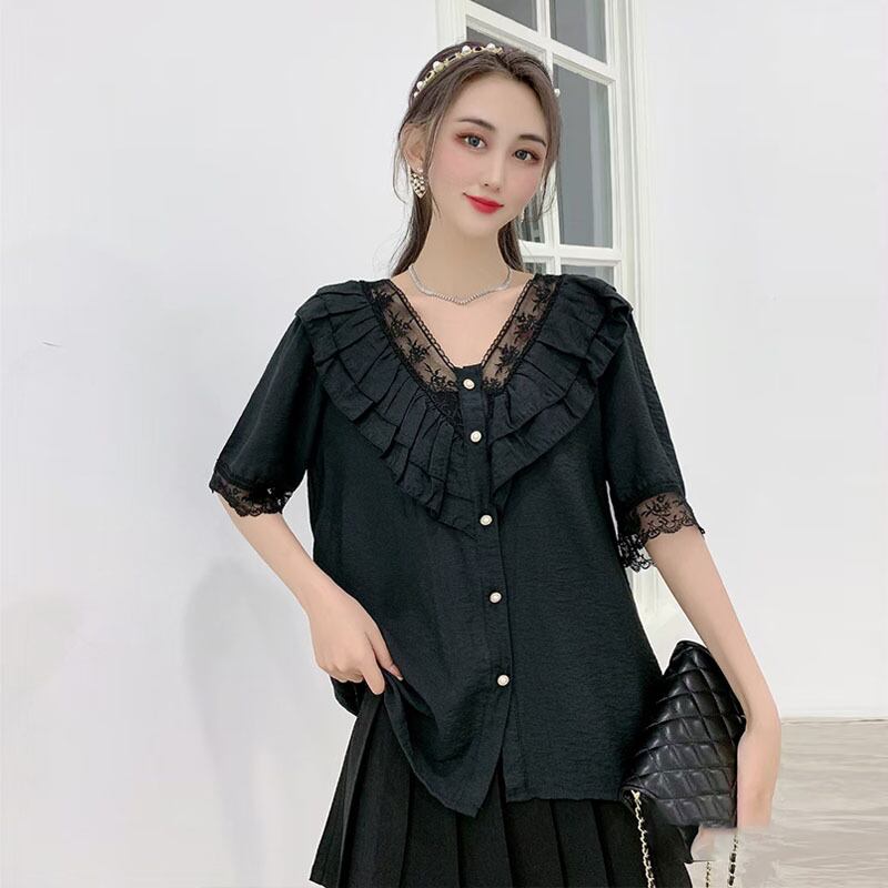 Vネックルーズトップス スタイルシャツ 大きめサイズ ステッチ ミックスインファッション1378466217