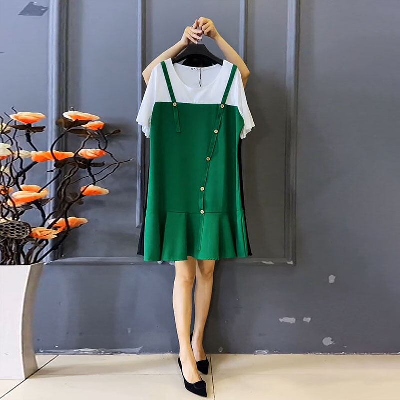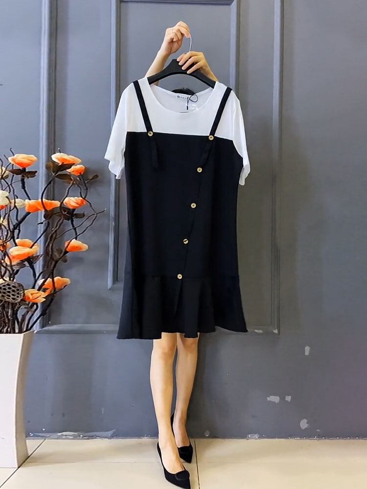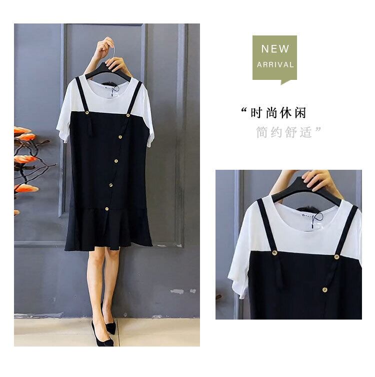 ドレス サマースタイル薄手ラウンドネックツーピース 大きめサイズ 夏物 Oネック ミックスインファッション68133643748