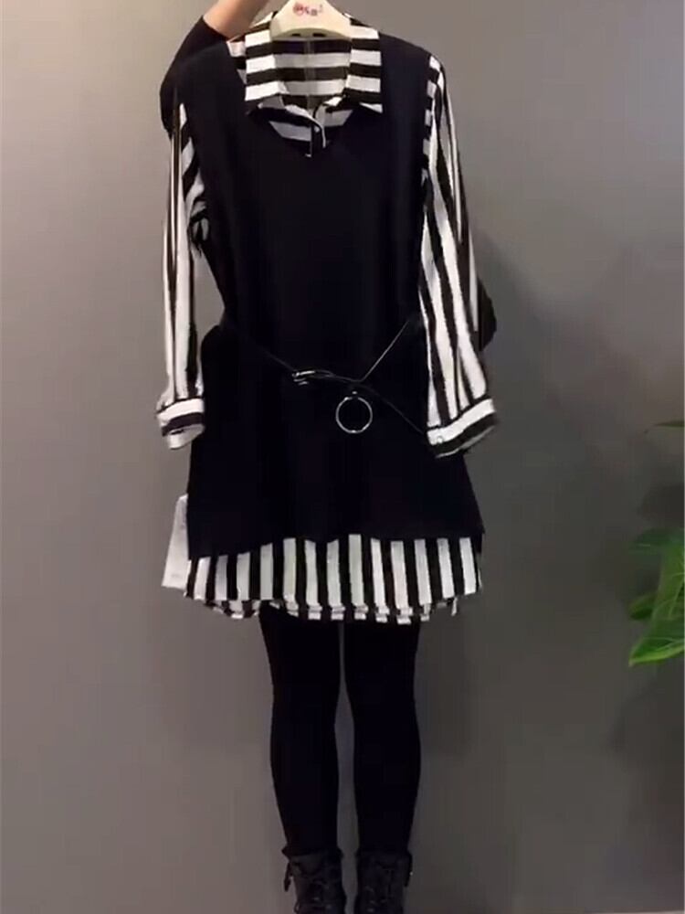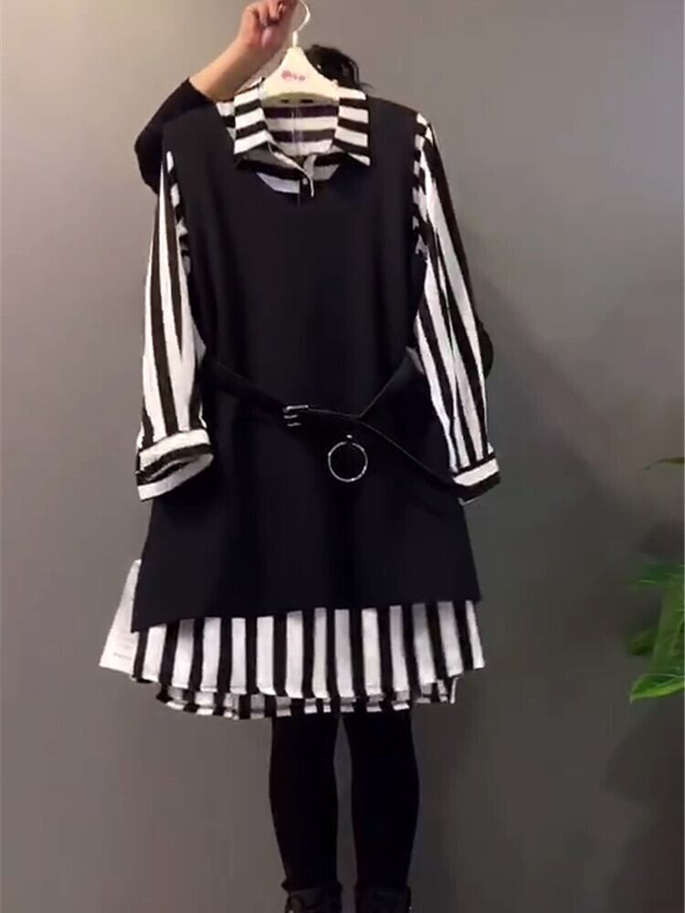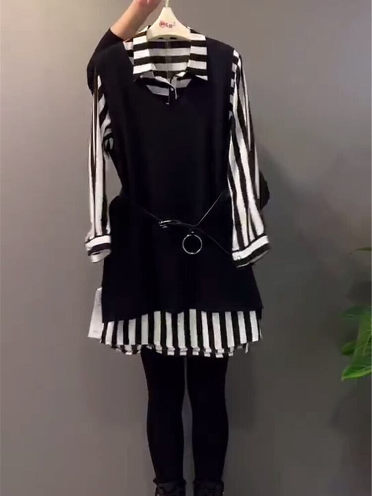 スプリングストライプトップス ロング 大きめサイズ 春物 ミックスインファッション87190610900