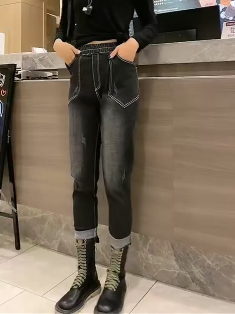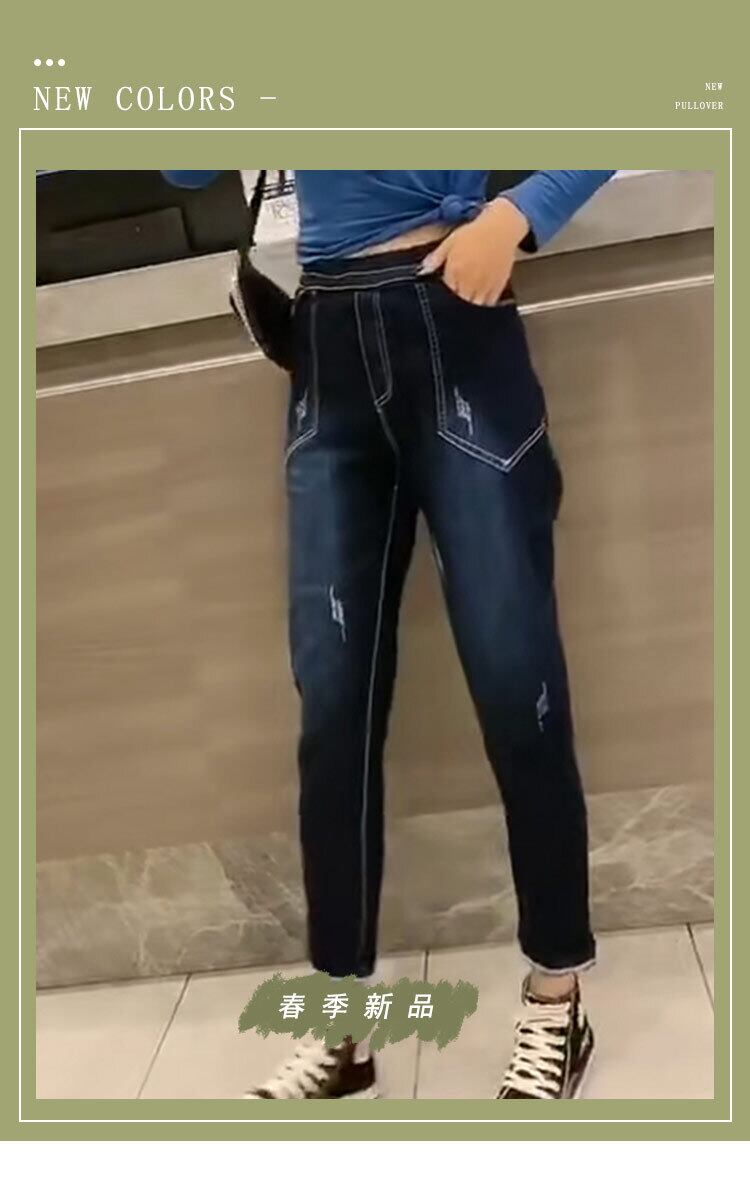 ジーンズ スプリングパンツ ルーズ エラスティック 伸縮 大きめサイズ 春物 ミックスインファッション82307821950
