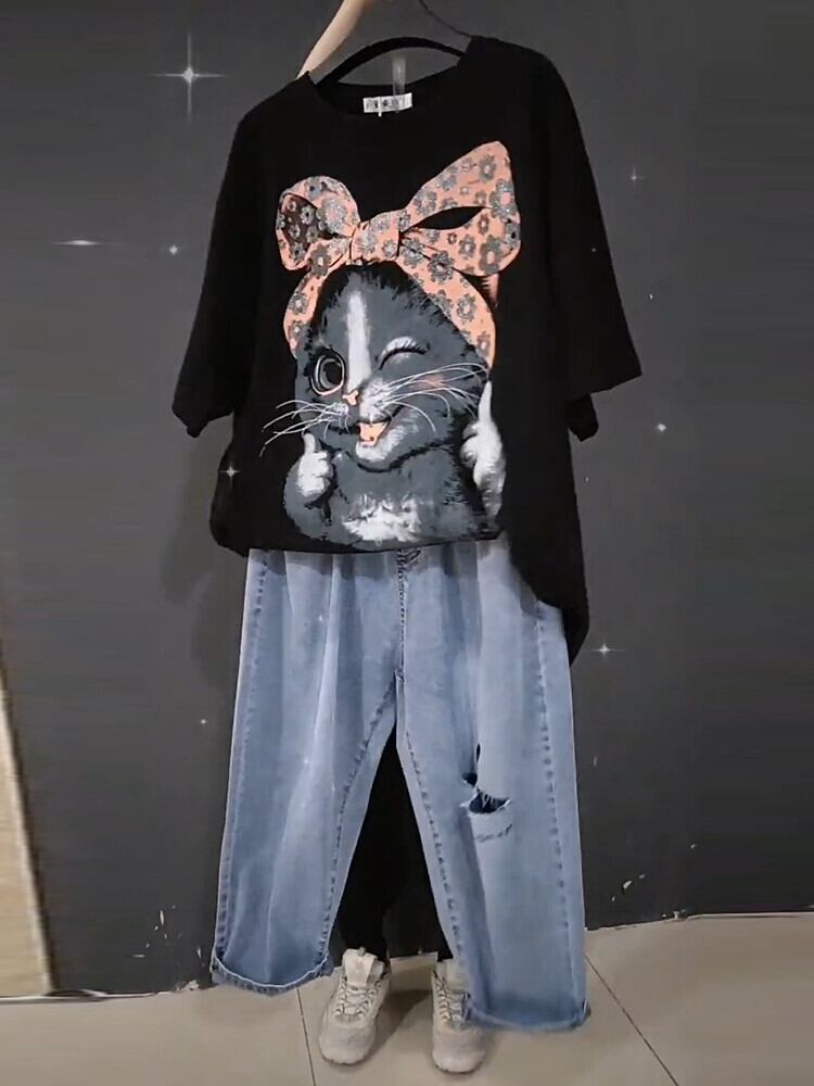 Tシャツ シャツ サマースタイルルーズ 大きめサイズ 大人ガーリー スウィート キュート カジュアル 夏物 ミックスインファッション62736217226