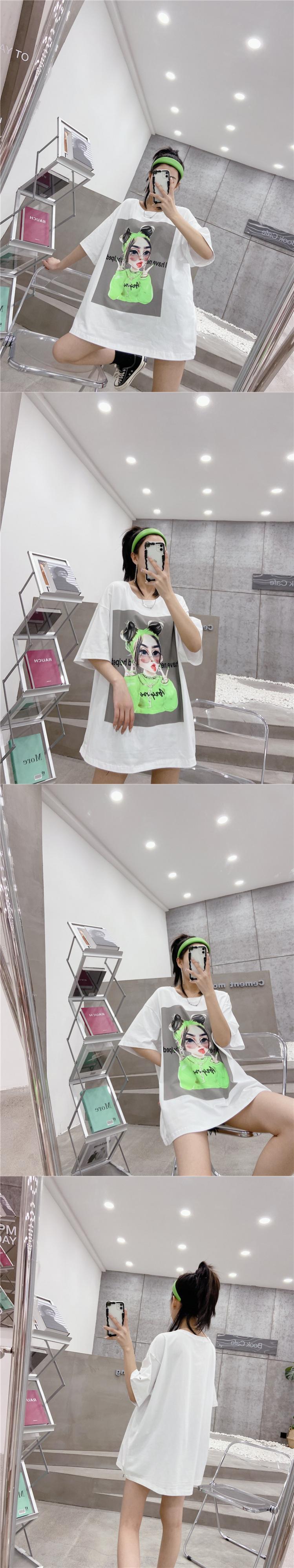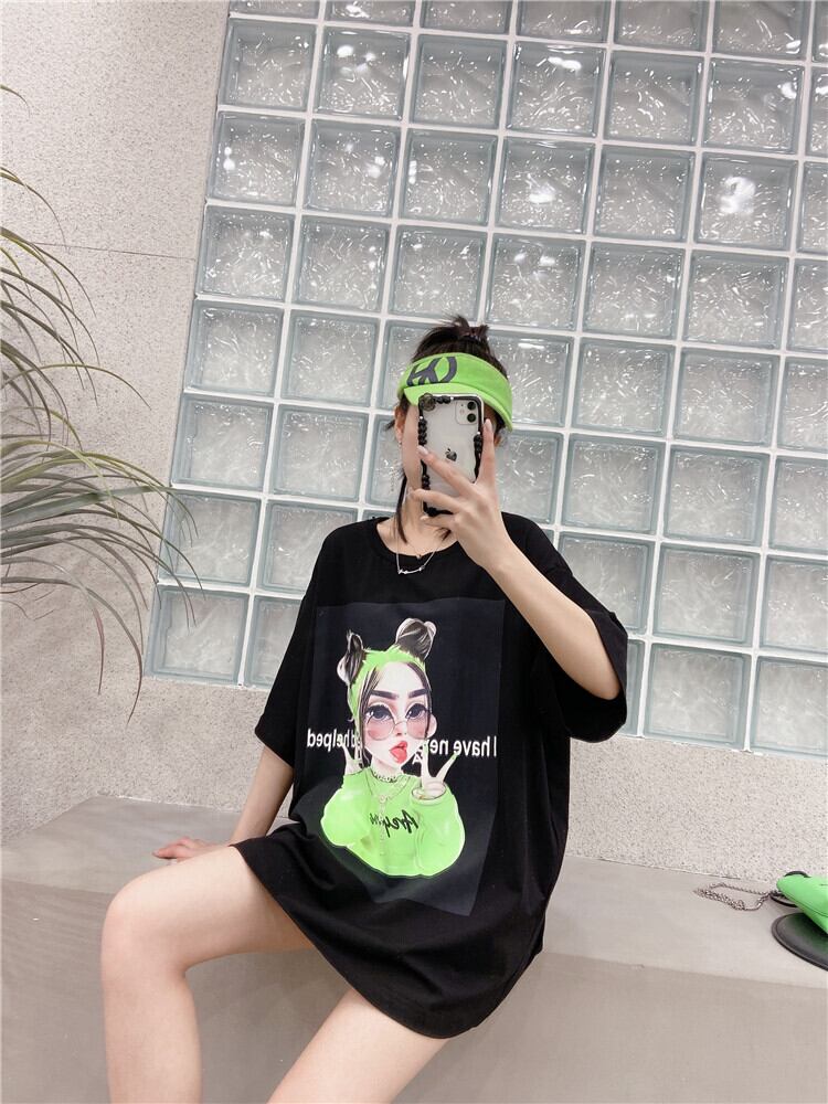 ラウンドネックTシャツ ルーズ薄手トップス サマー 大きめサイズ 夏物 Oネック ミックスインファッション79004668886