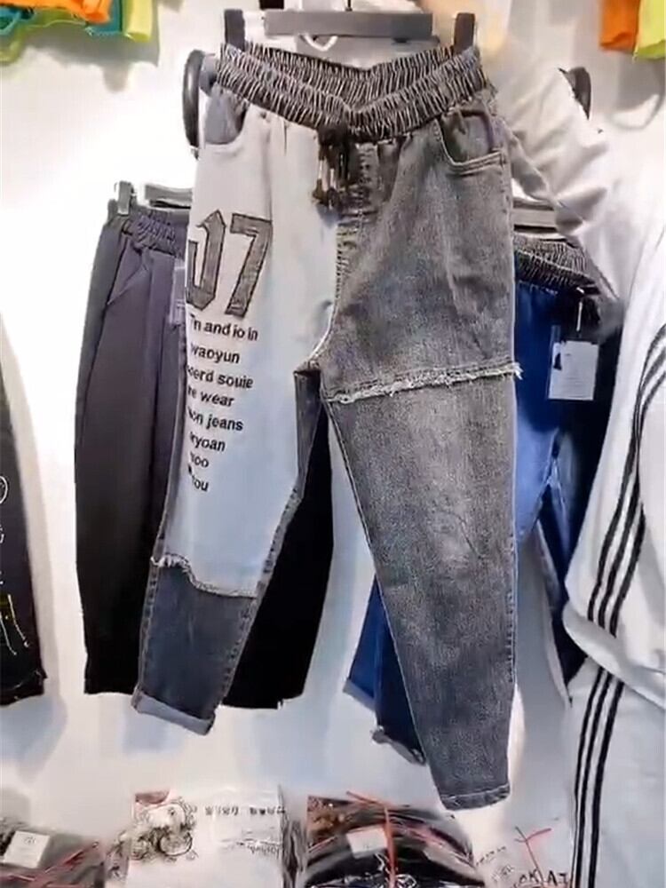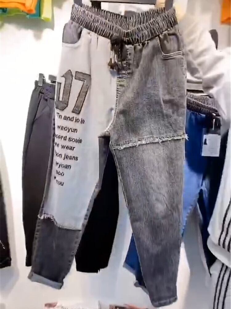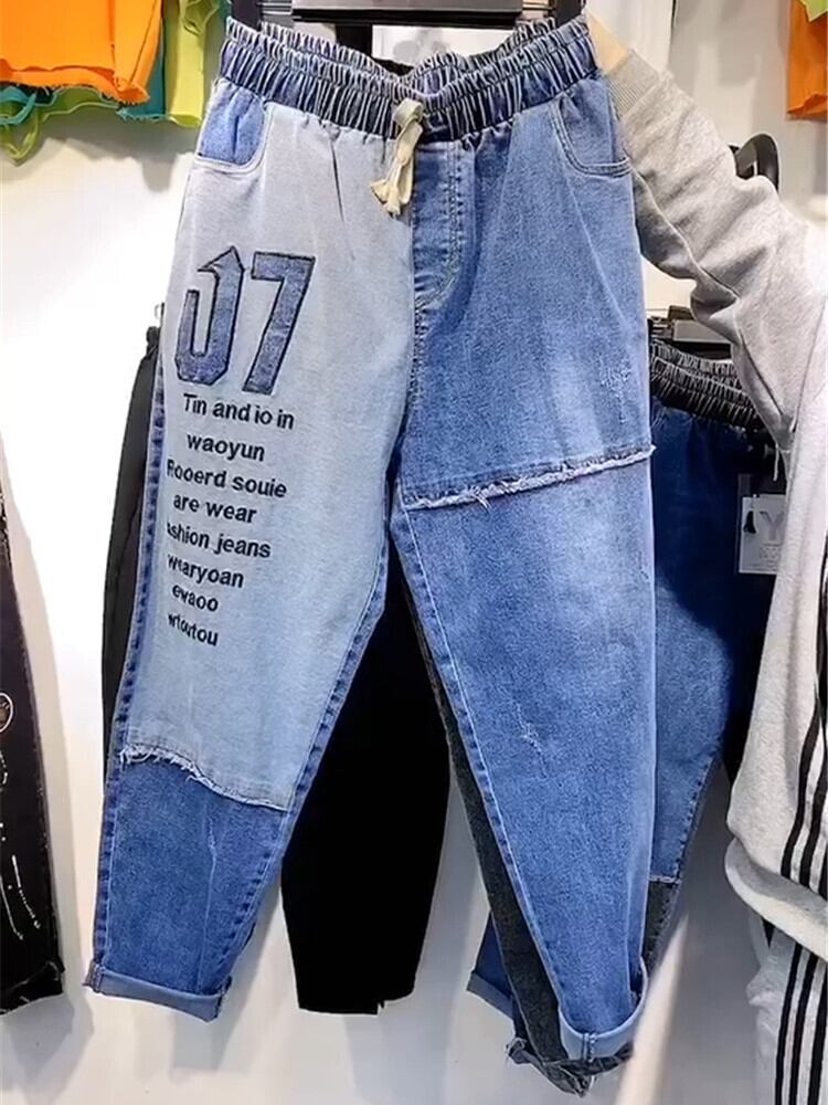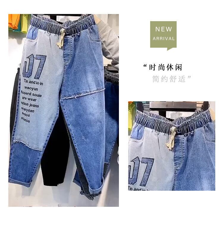 ジーンズ スプリングハイウェストウェストルーズパンツ 大きめサイズ 春物 ミックスインファッション8309980922