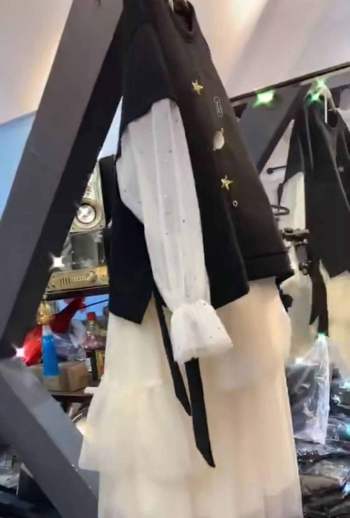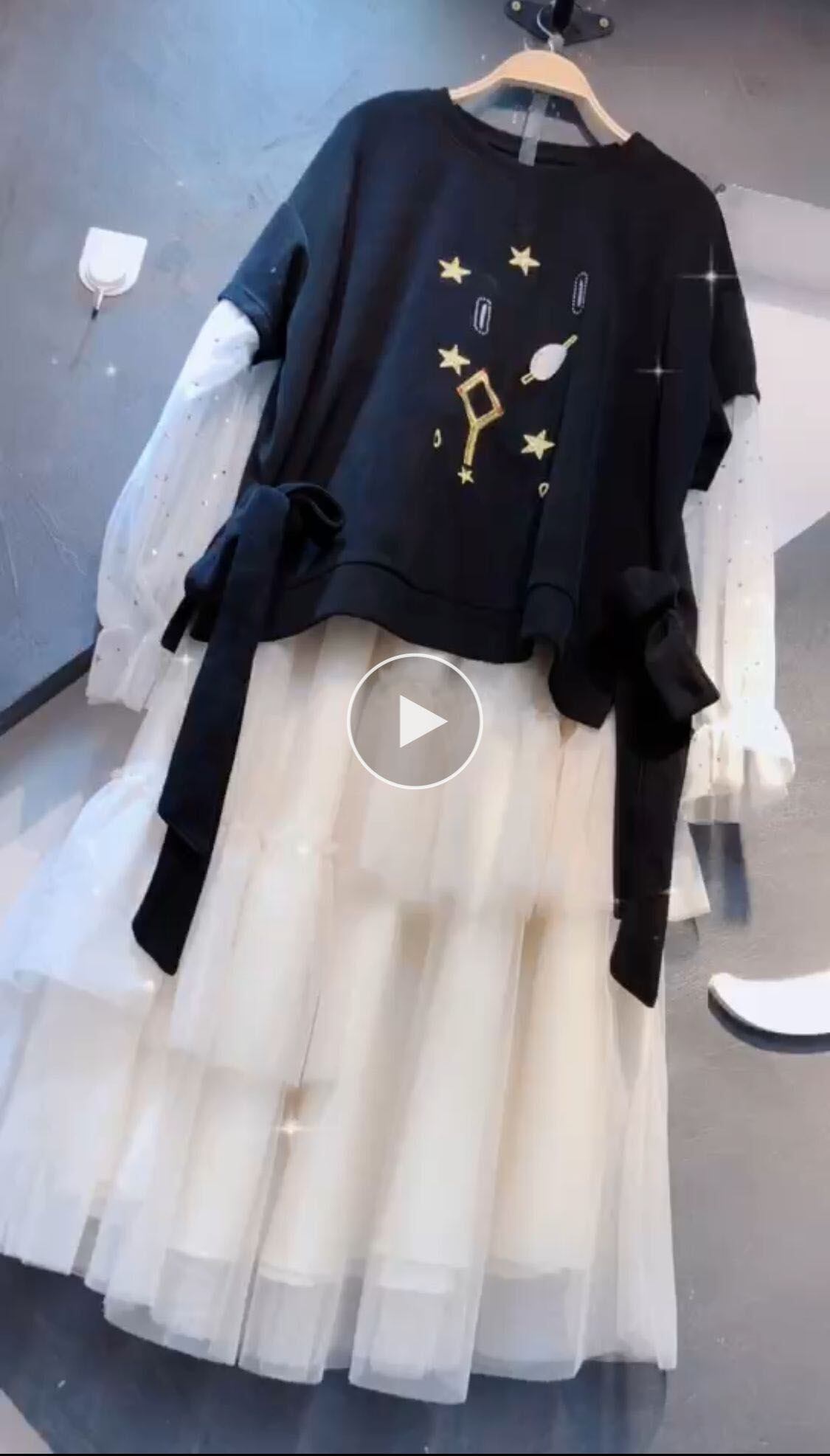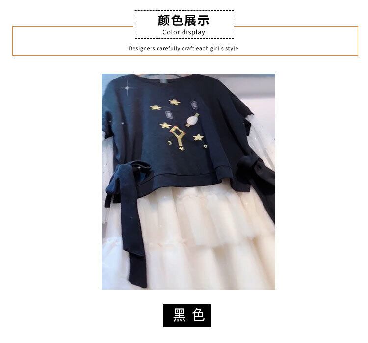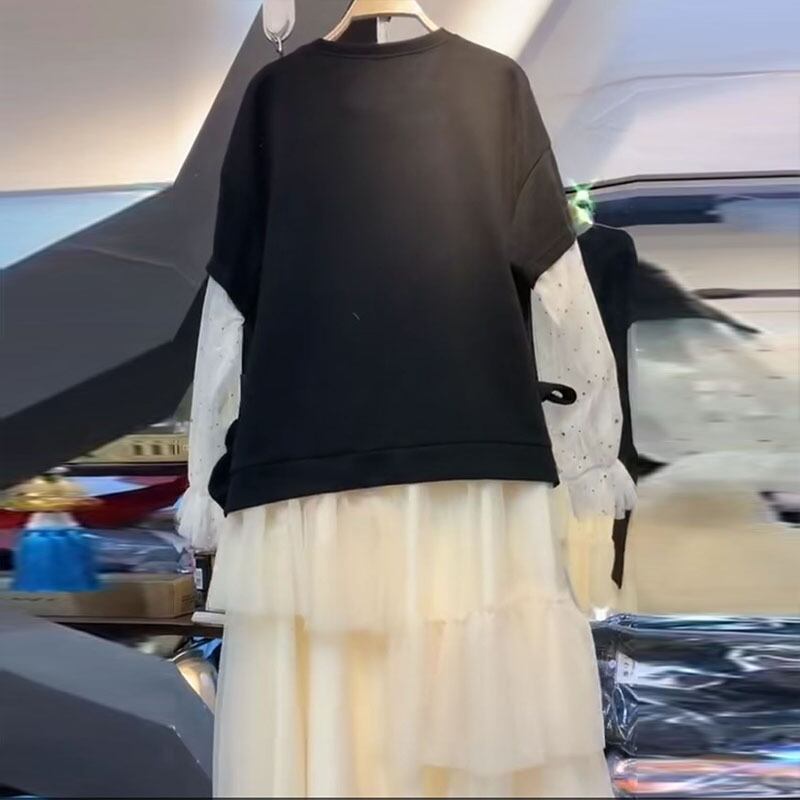 色:ブラックT,白いスカート,トップス+スカートツーピーススーツ