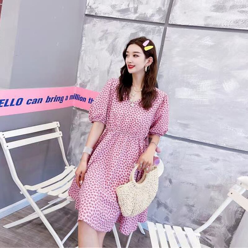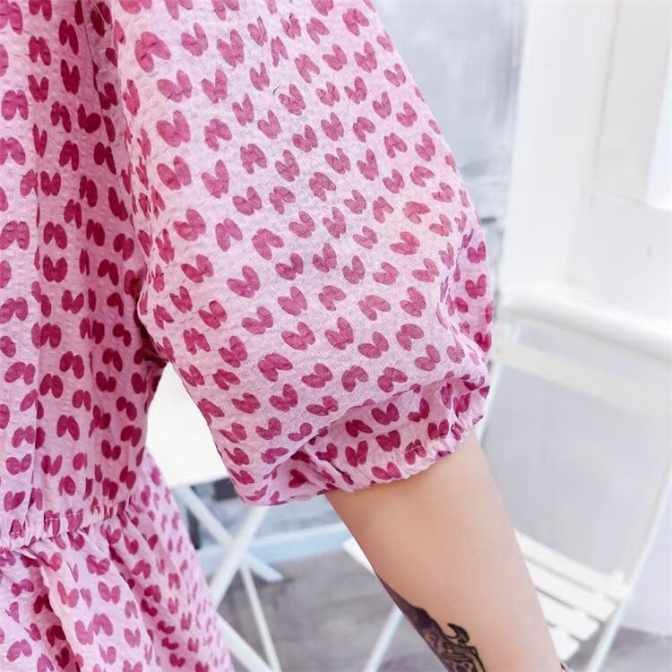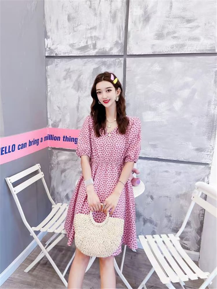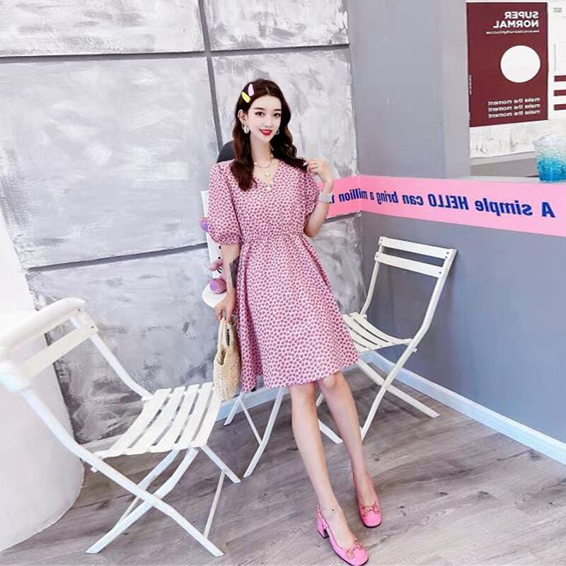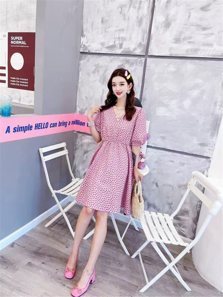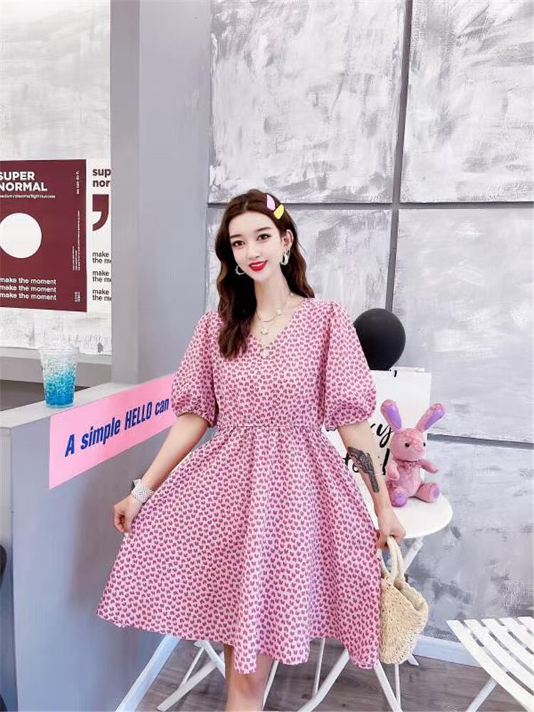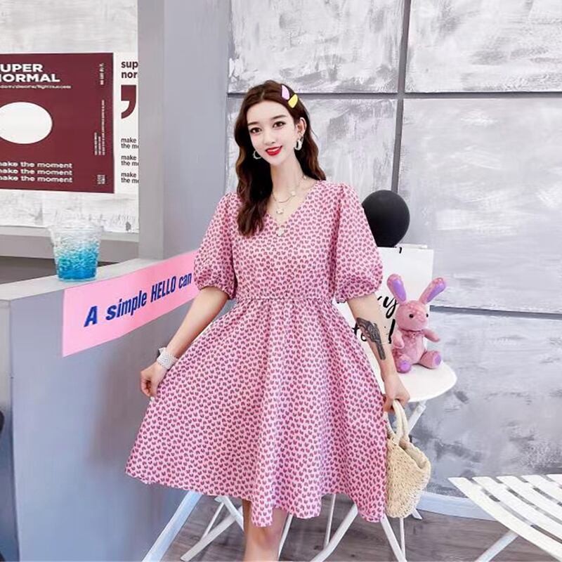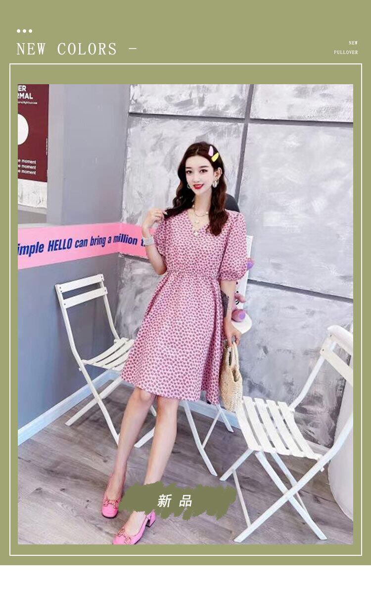 サマーカジュアルスリムフローラルスカート ルーズVネックウェストスリーブドレス 大きめサイズ 夏物 花柄 ミックスインファッション61999331135