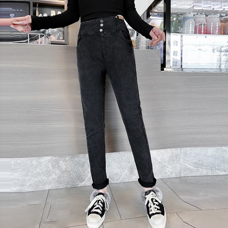 オータムウィンターストレッチウェストパンツ ベルベットスリムジーンズ エラスティック 伸縮 大きめサイズ 秋物 冬物 ミックスインファッション26335537178