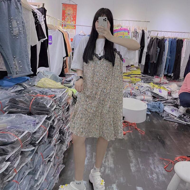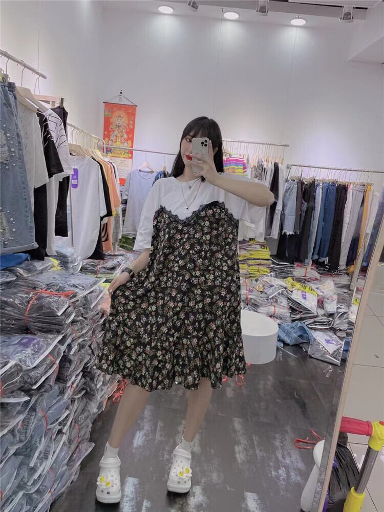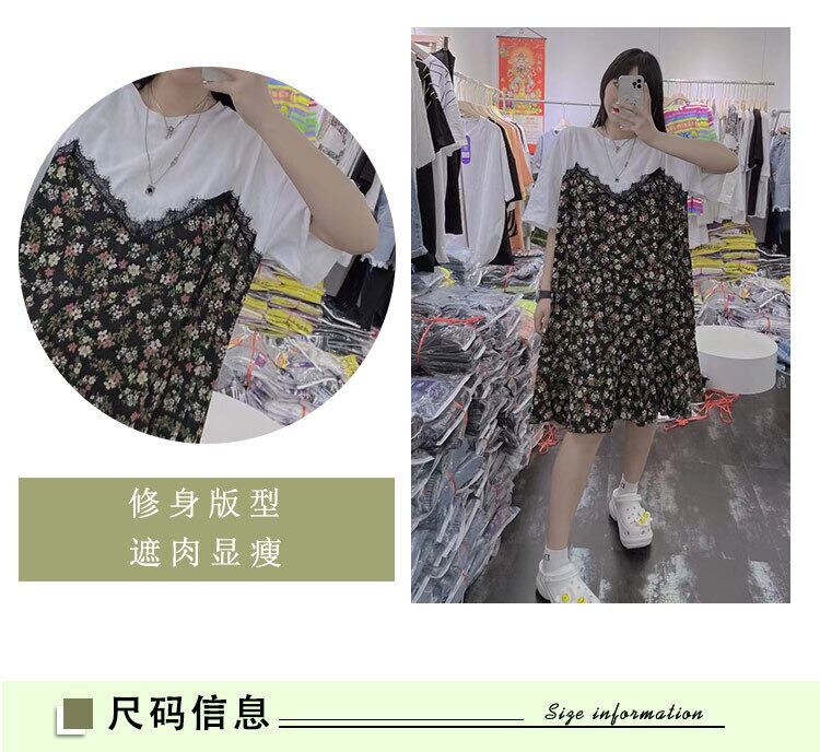 ラウンドネックフローラルレースドレス 薄手 大きめサイズ 花柄 Oネック ステッチ ミックスインファッション6397346909
