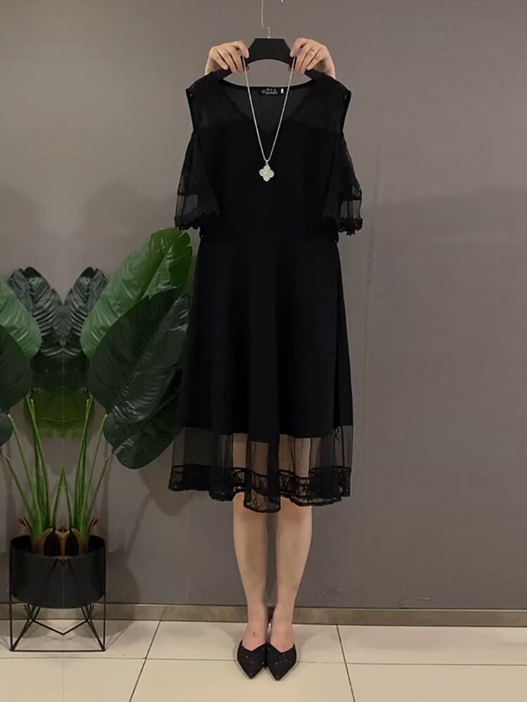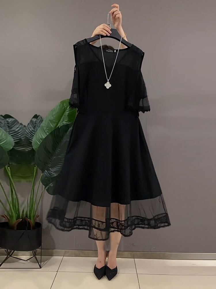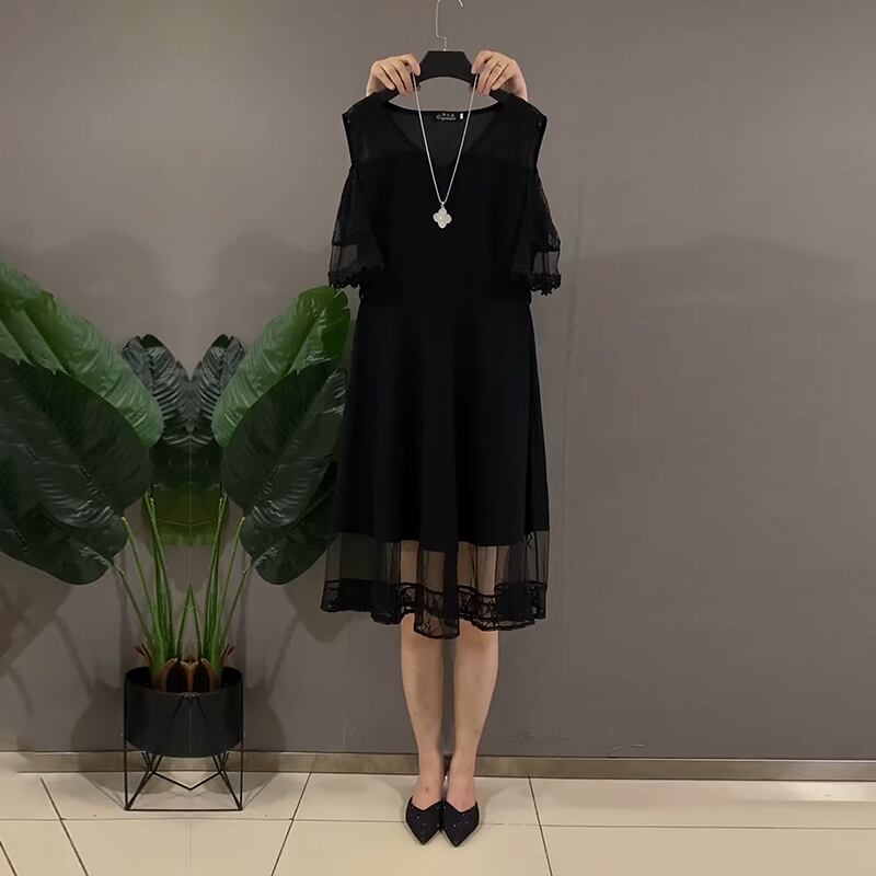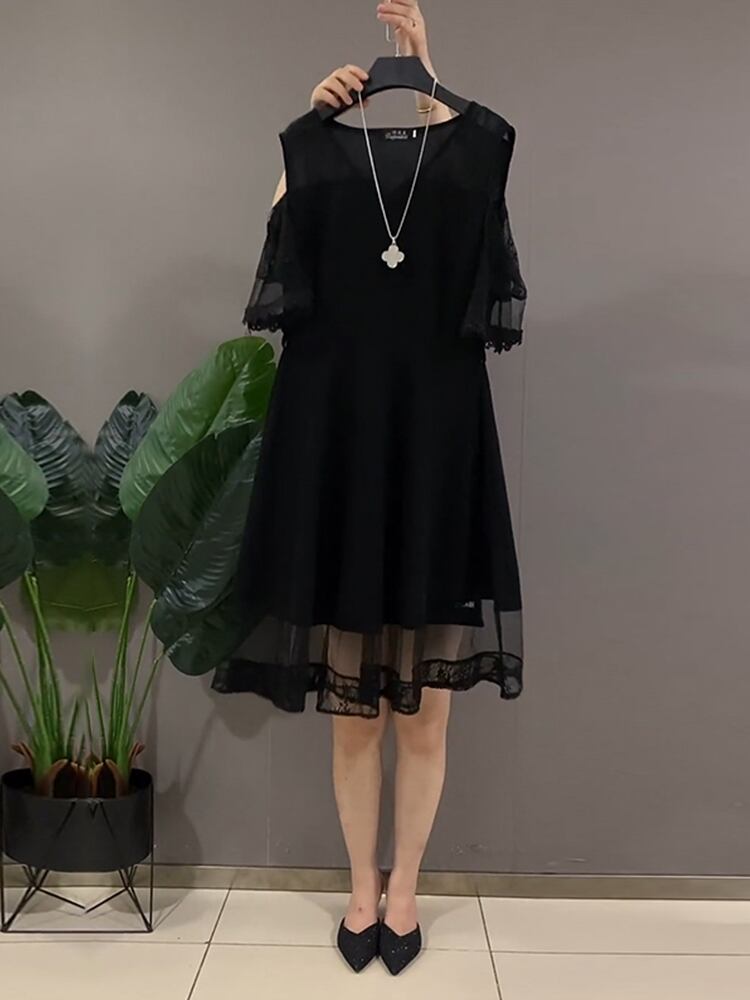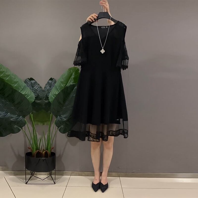 スカート ルーズVネックストラップレスレースウェストドレス 大きめサイズ ミックスインファッション41775220775