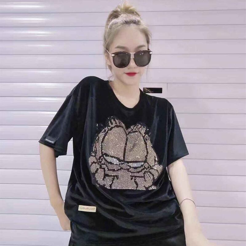ベルベットラウンドネックシャツ 半袖スリーブオータムウィンタートップス ハーフスリーブ 大きめサイズ 秋物 冬物 Oネック ミックスインファッション72925414374