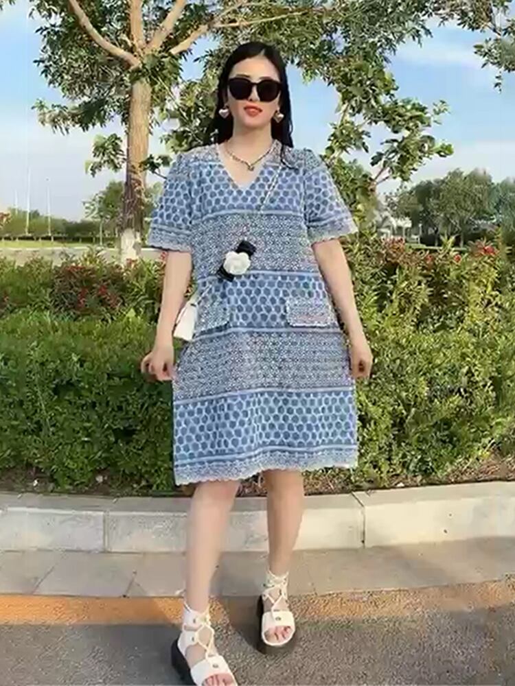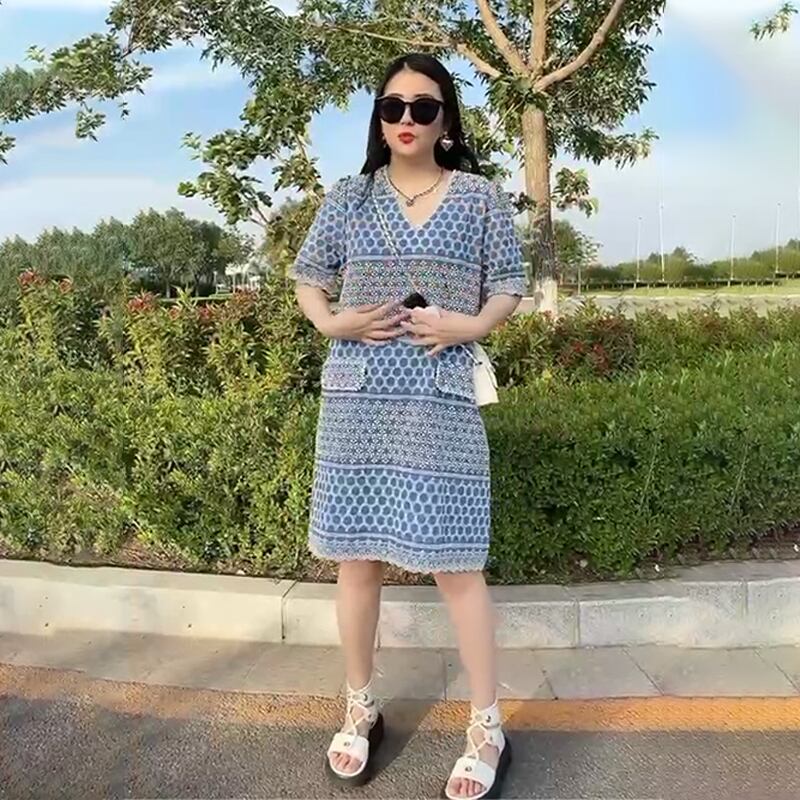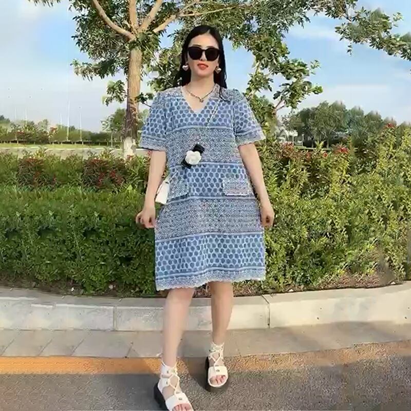 Vネックレーススカート ドレス サマーカジュアルルーズ薄手 大きめサイズ 夏物 ヨーロピアン ミックスインファッション74716665069