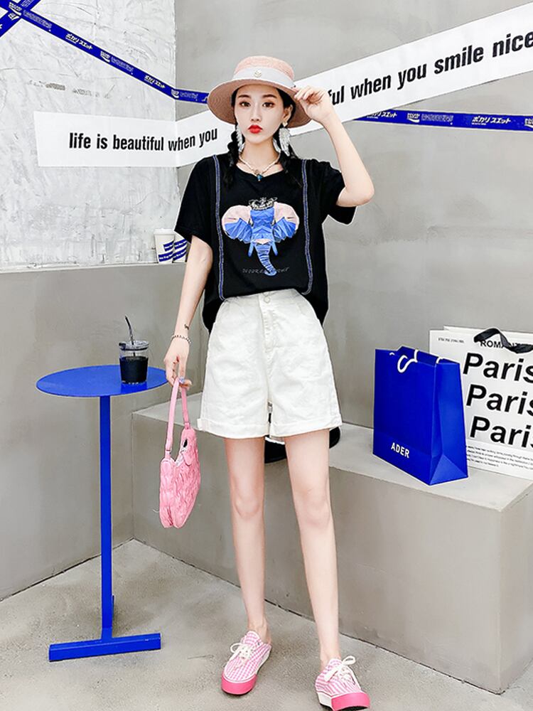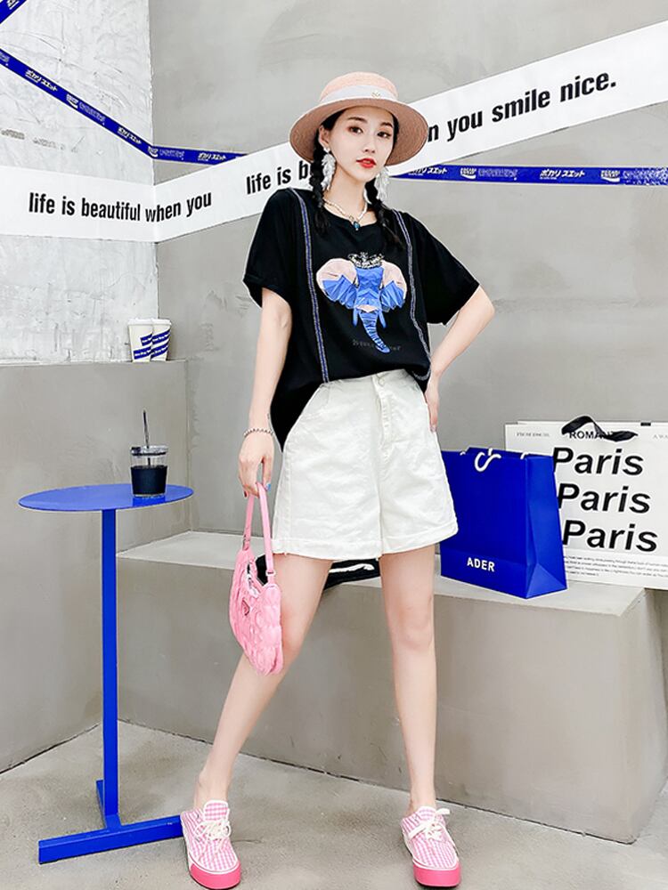 レディースTシャツ サマーブラウス ショーツ 大きめサイズ 夏物 ブルマー ミックスインファッション28937616574