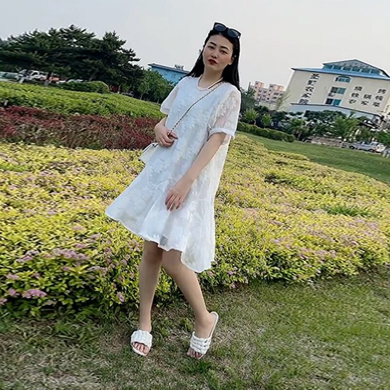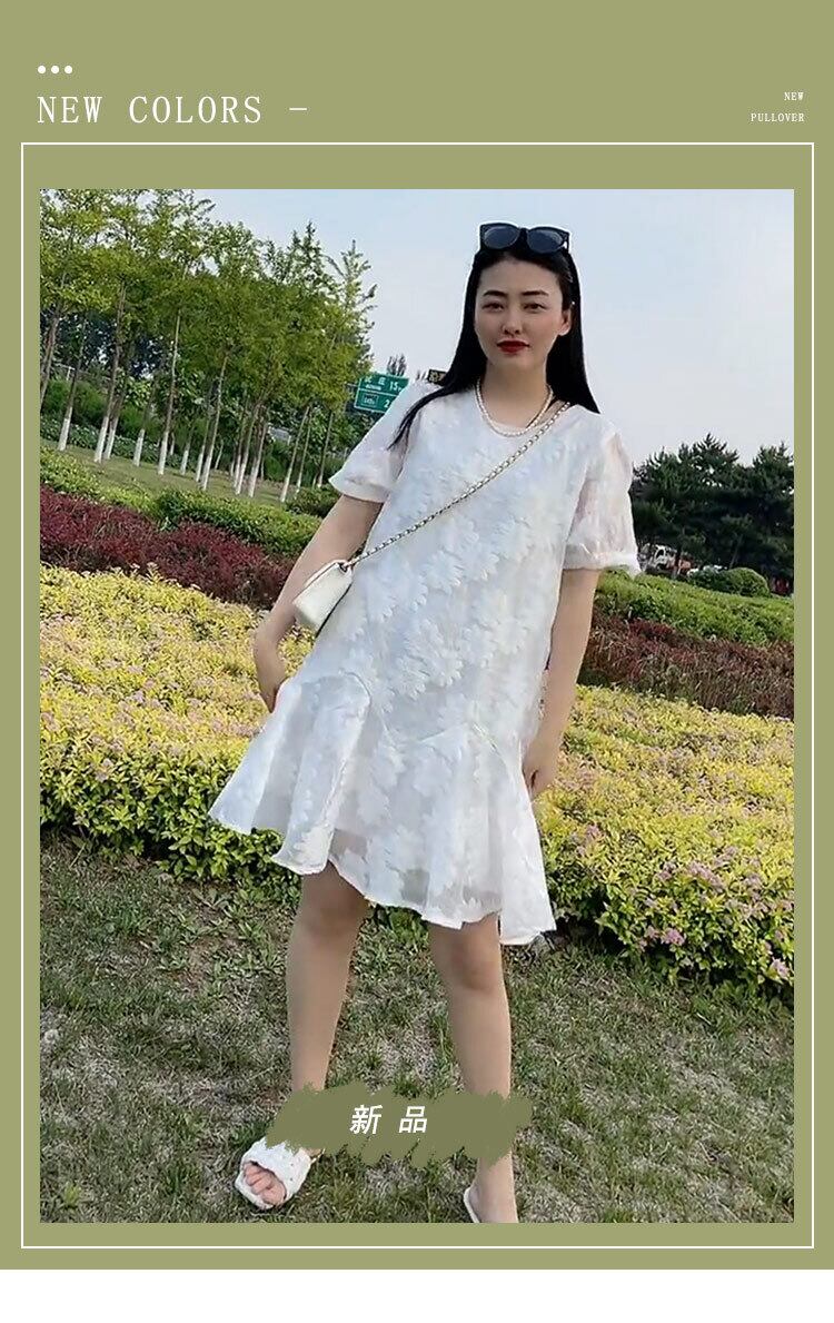 サマースタンダードラウンドネックドレス レトロ 大きめサイズ 夏物 Oネック ミックスインファッション44869103625
