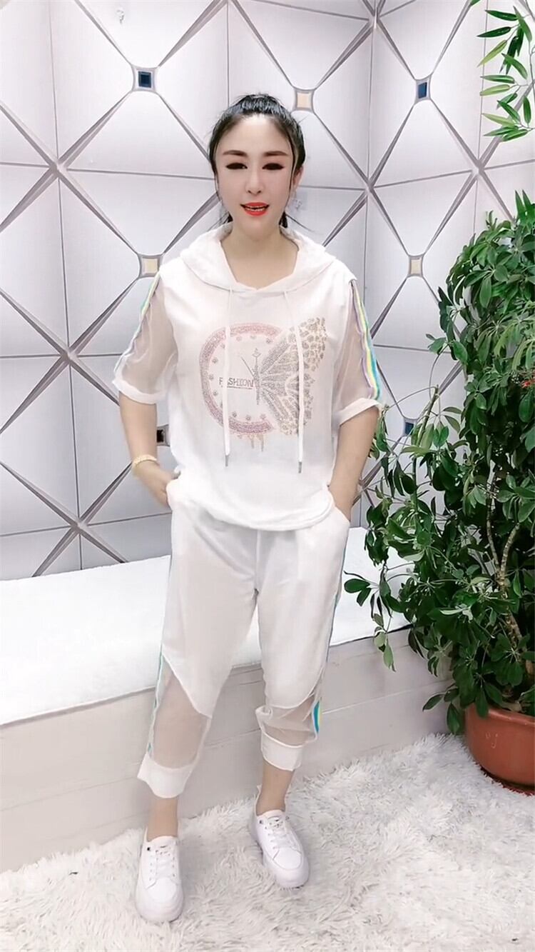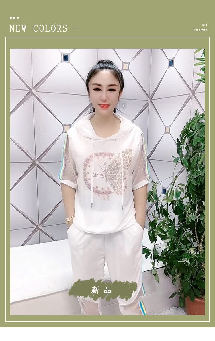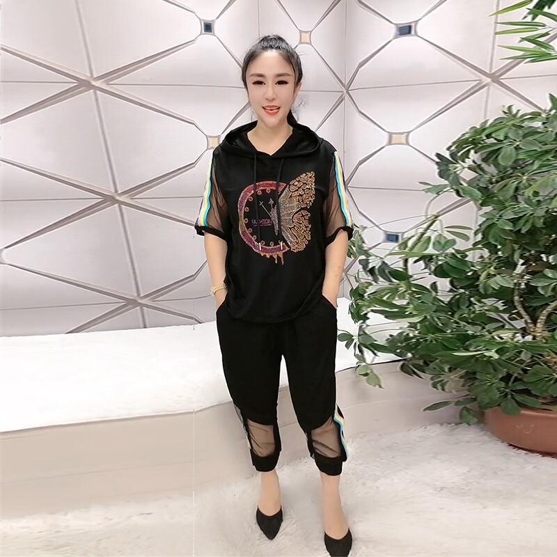 フードラインストーンButterflyデザイン シャツ サイドストライプカジュアルパンツ 大きめサイズ ミックスインファッション71929749934