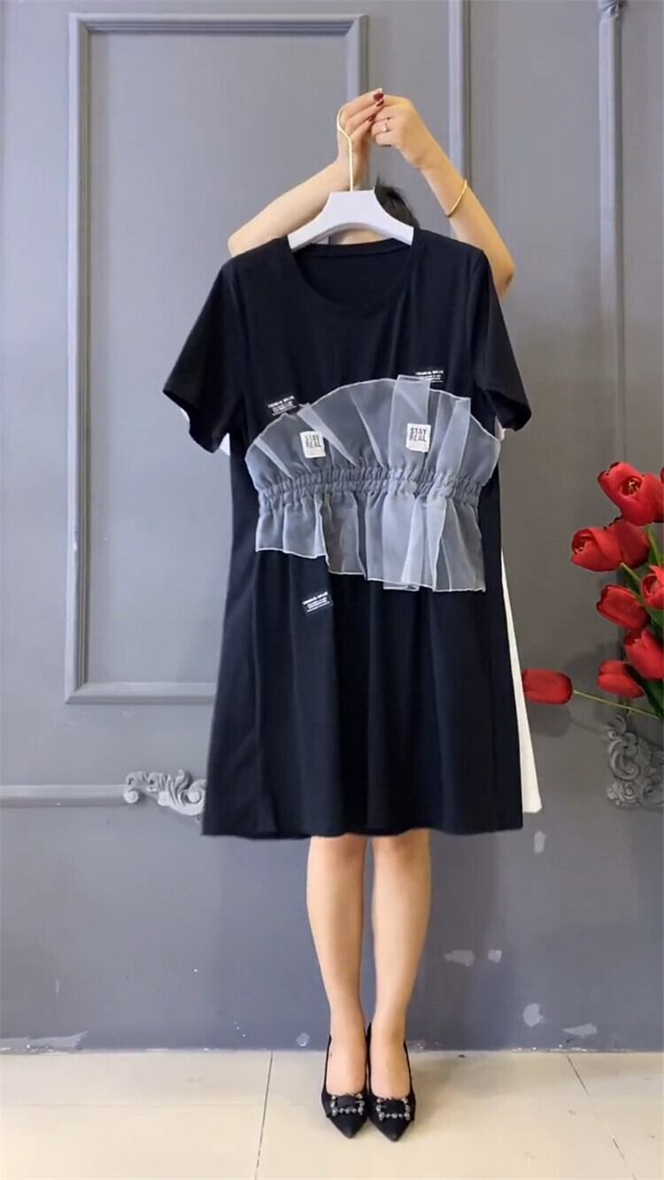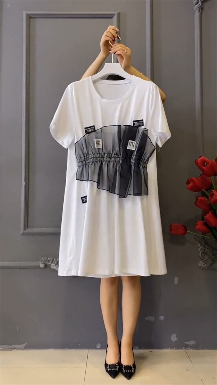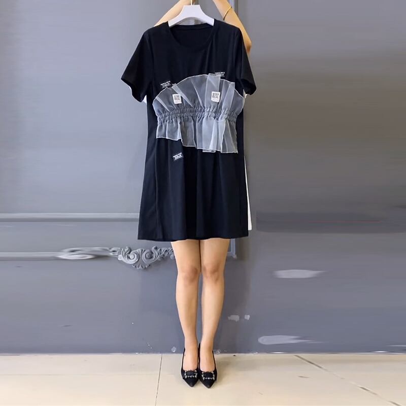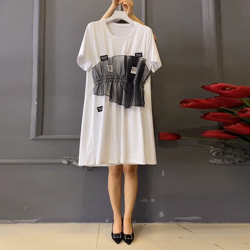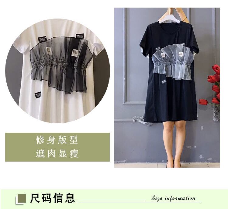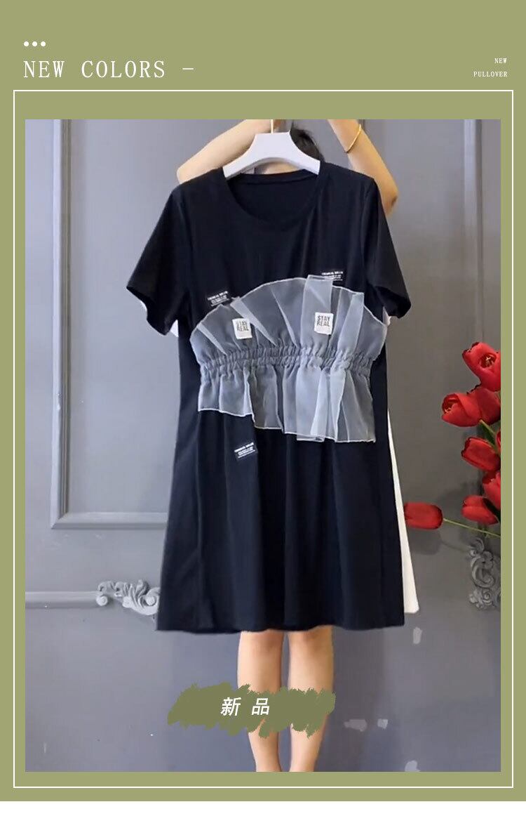 サマーラウンドネックメッシュドレス 大きめサイズ 大人ガーリー スウィート キュート カジュアル 夏物 Oネック ミックスインファッション34949660499