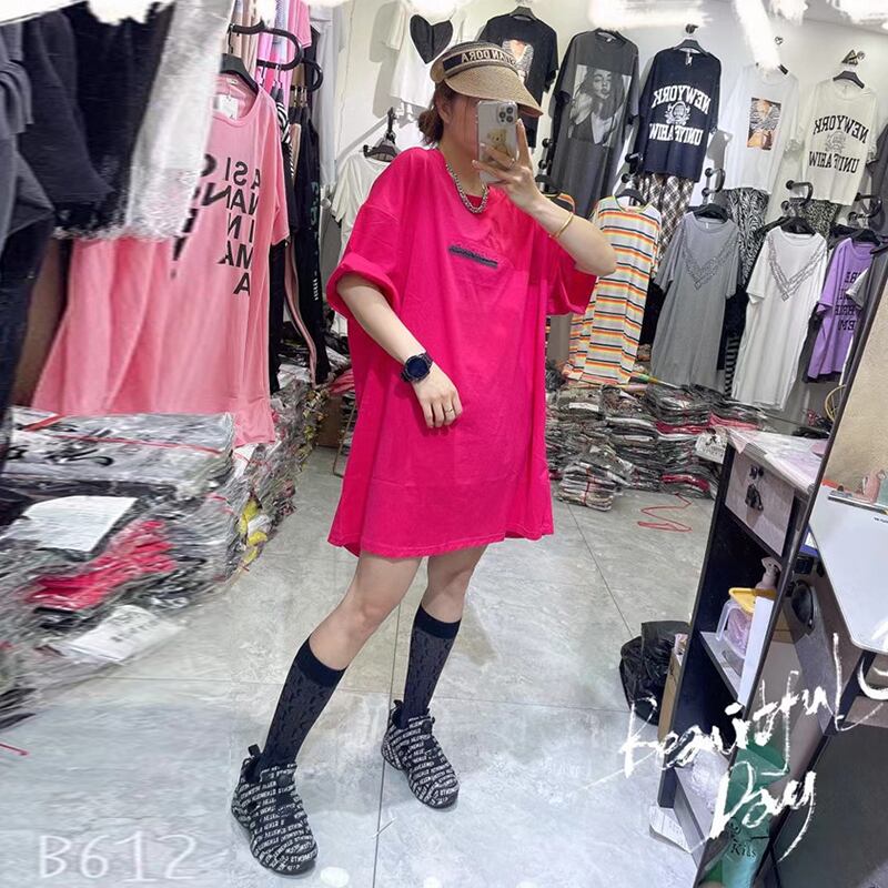 サマードレス スタイルルーズ薄手Tシャツ スカート 大きめサイズ 夏物 ミックスインファッション54248906685