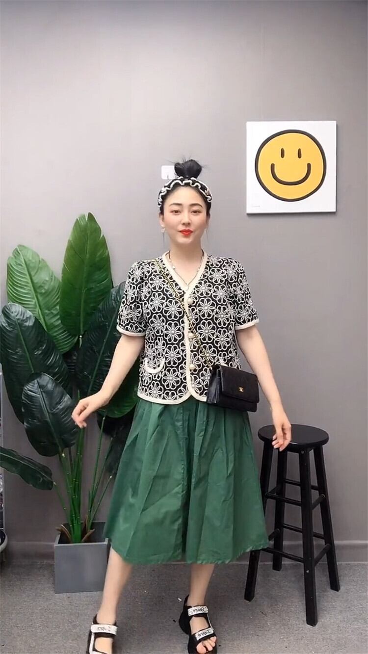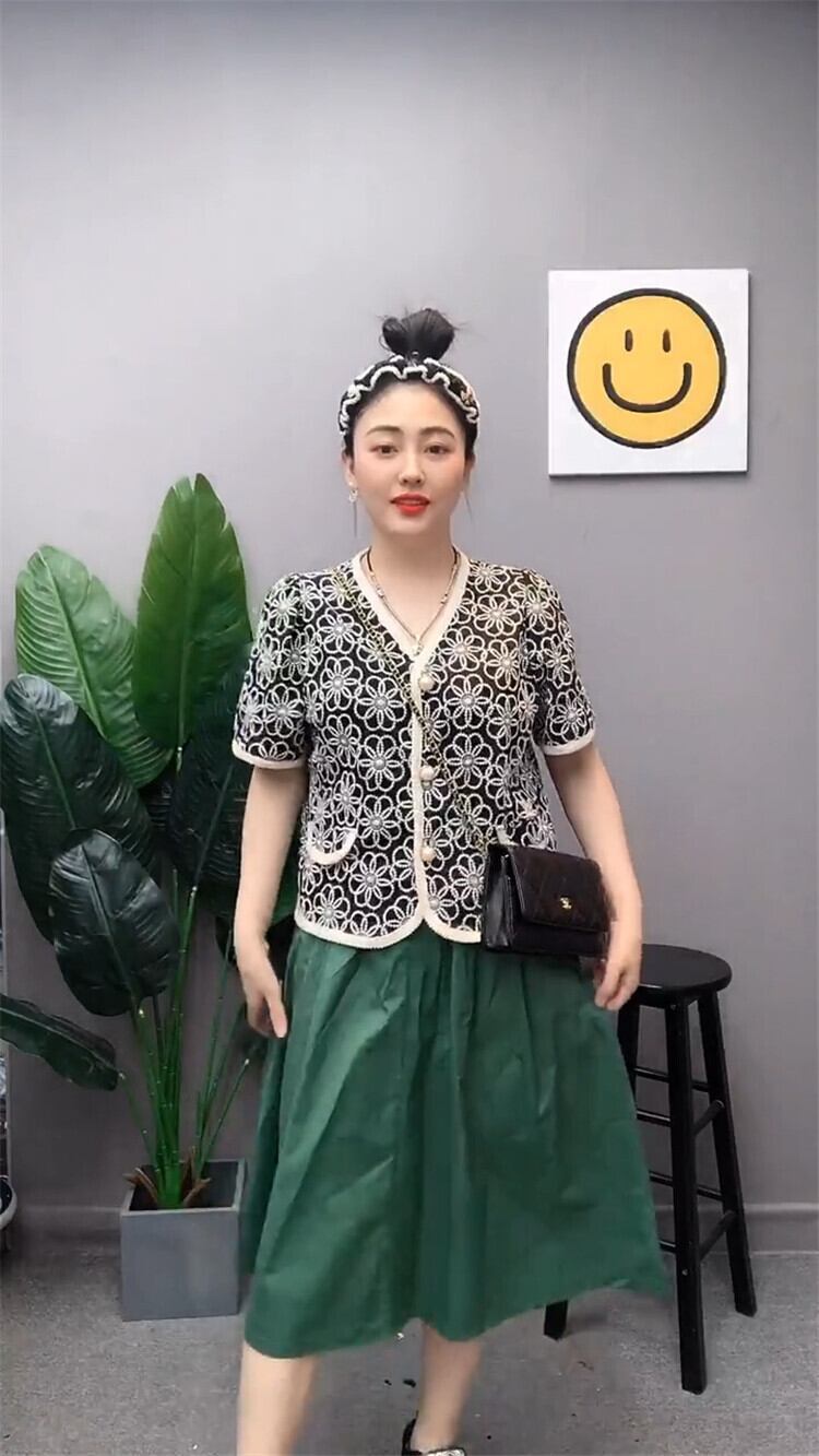 Flowerデザイン カーディガンシャツ Aラインスカート サマールーズ薄手 大きめサイズ 夏物 フラワーデザイン ミックスインファッション17809577024