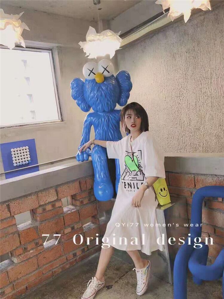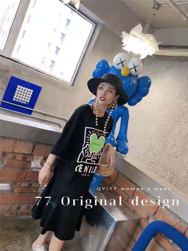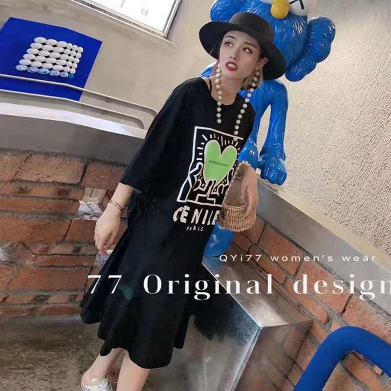 サマールーズラウンドネックドレス スカート 大きめサイズ 夏物 Oネック ミックスインファッション96177468999