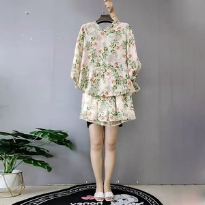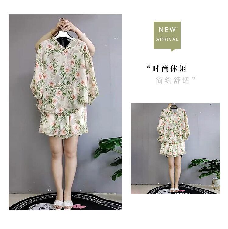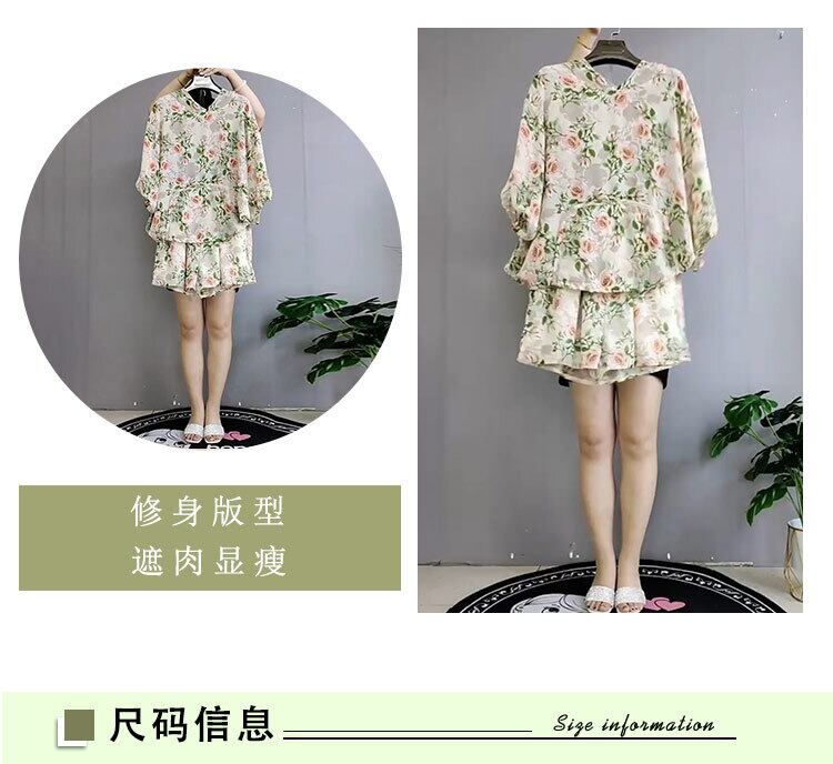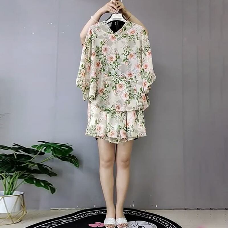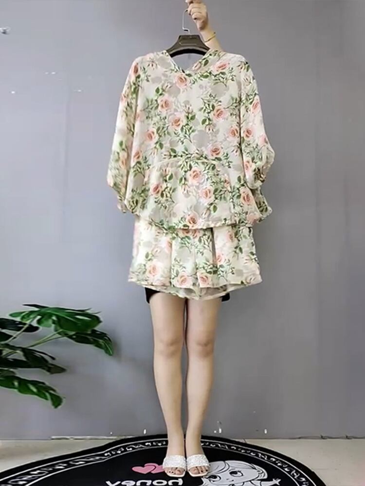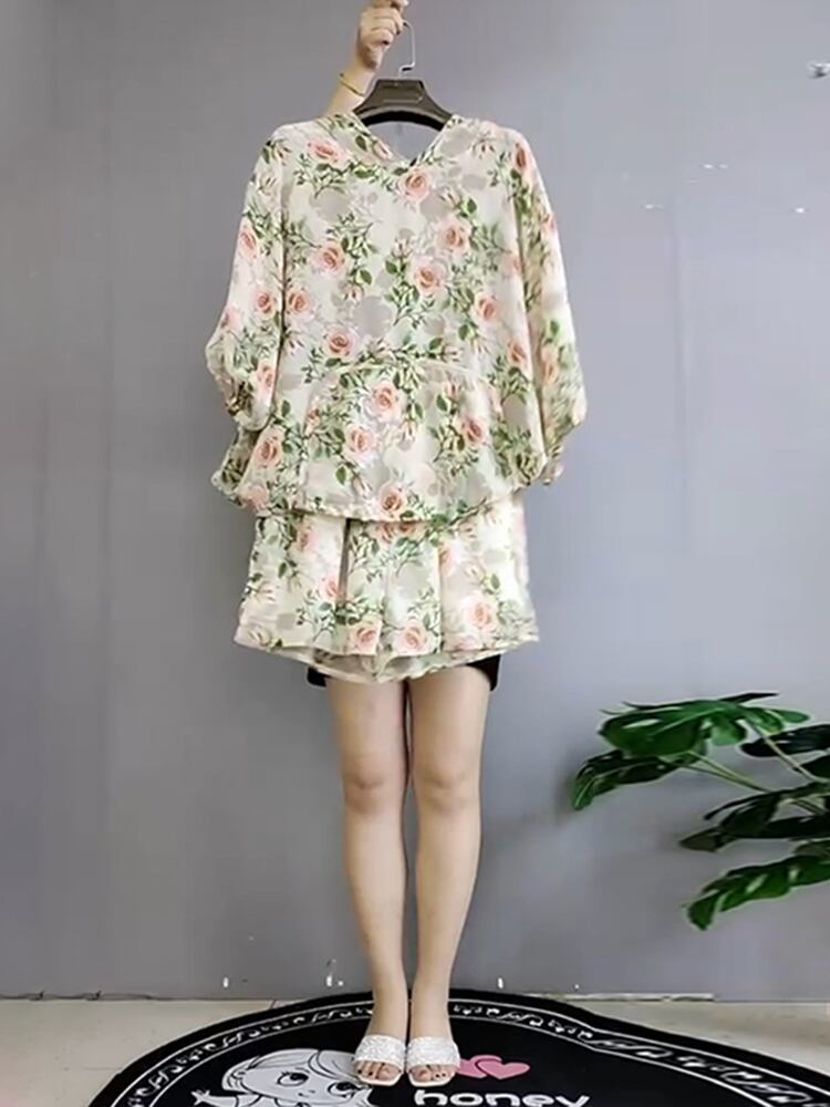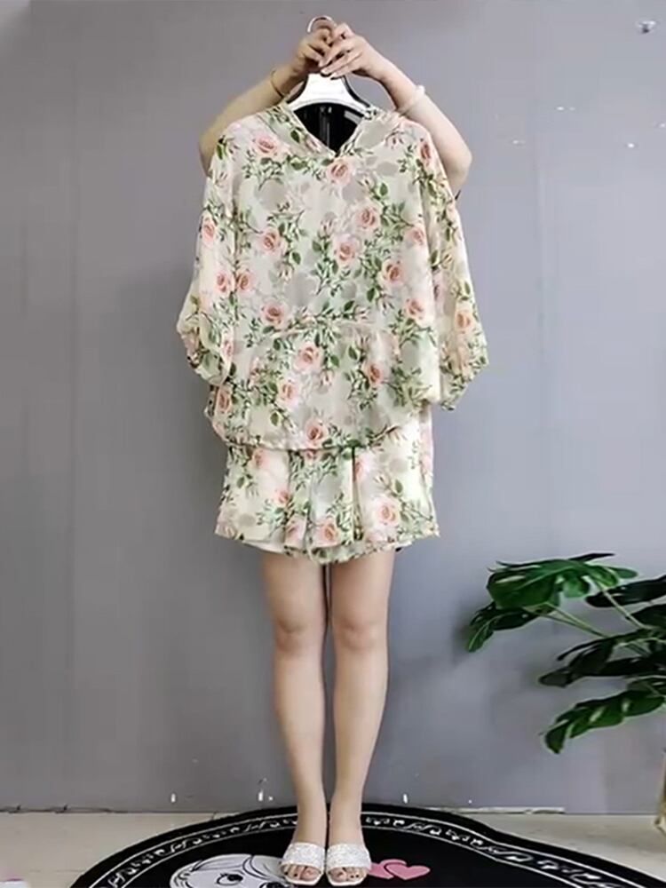 サマーシフォンフードフローラルシャツ Tシャツ ショーツ 大きめサイズ 夏物 ブルマー 花柄 ミックスインファッション74969216822