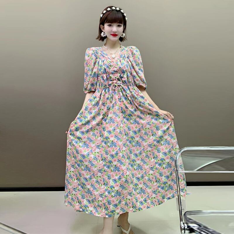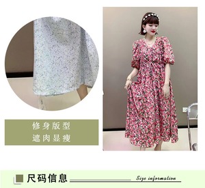 Vネックプリーツギャザーウェストフローラルドレス 大きめサイズ 花柄 ミックスインファッション15618629437