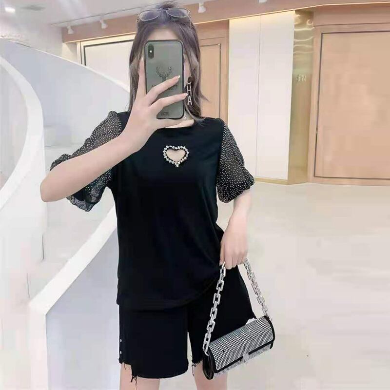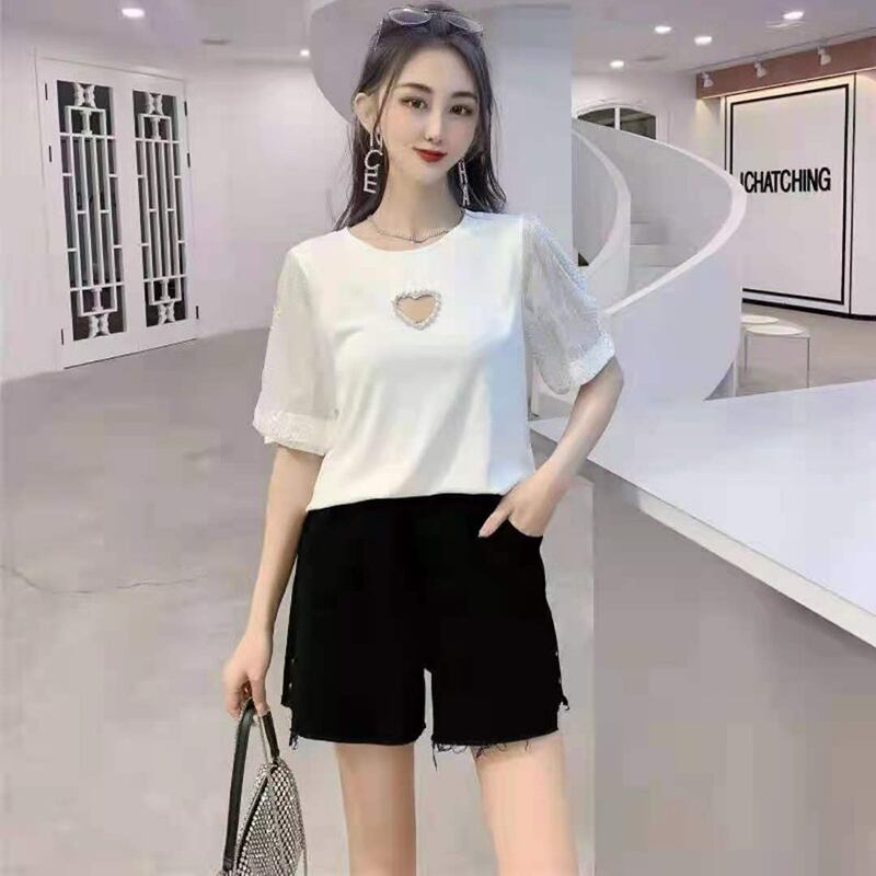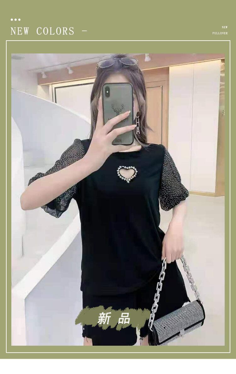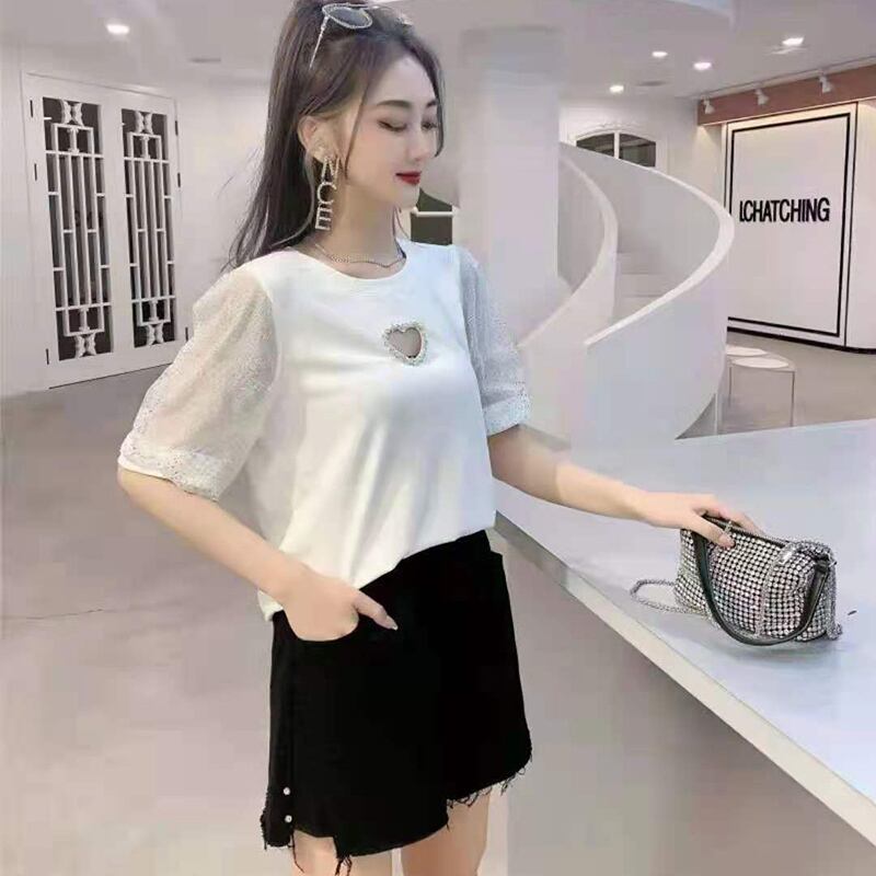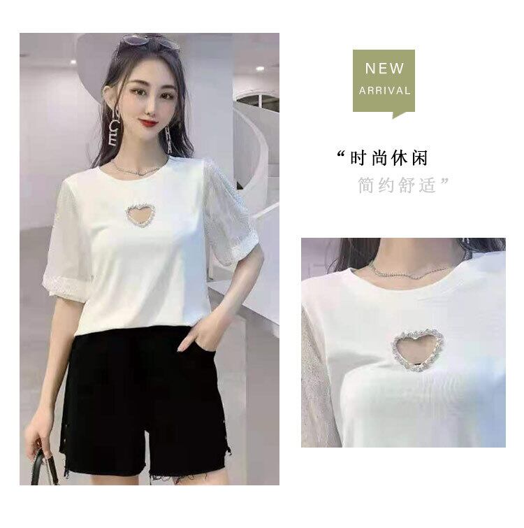 ハートメッシュ半袖スリーブTシャツ トップス ハーフスリーブ 大きめサイズ ミックスインファッション71890077090