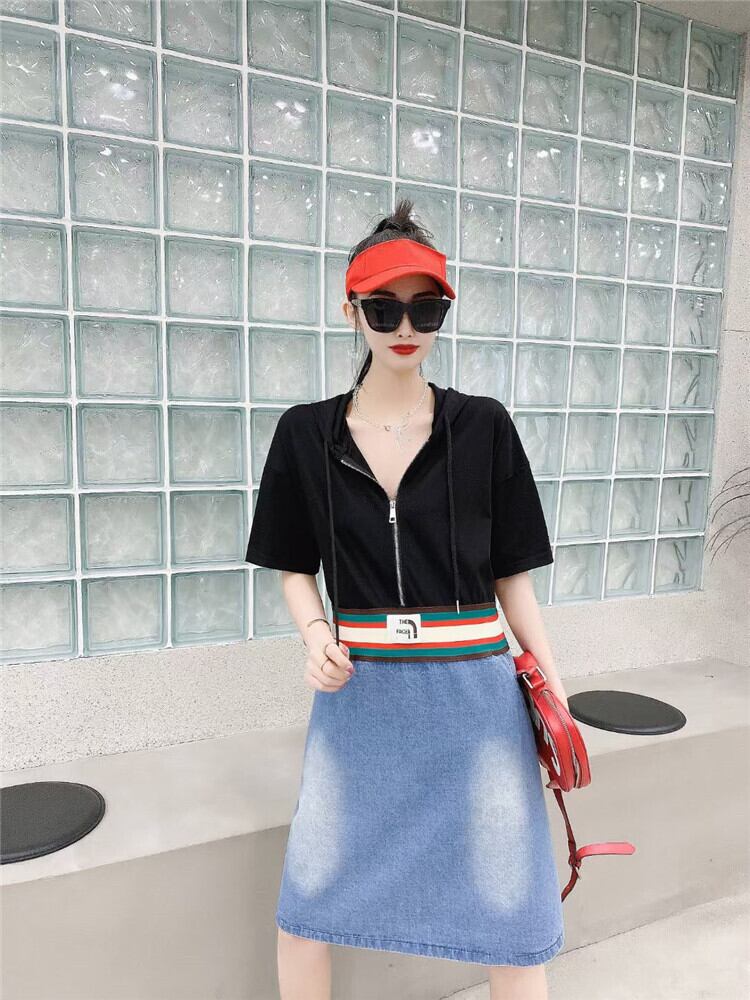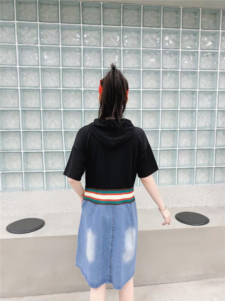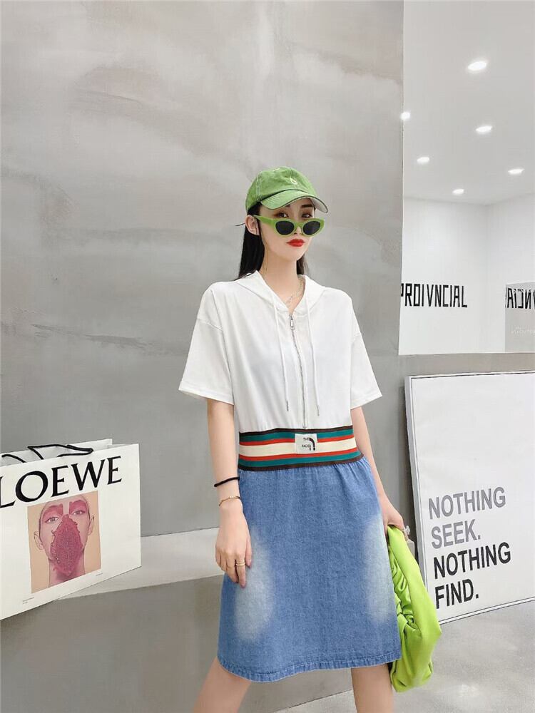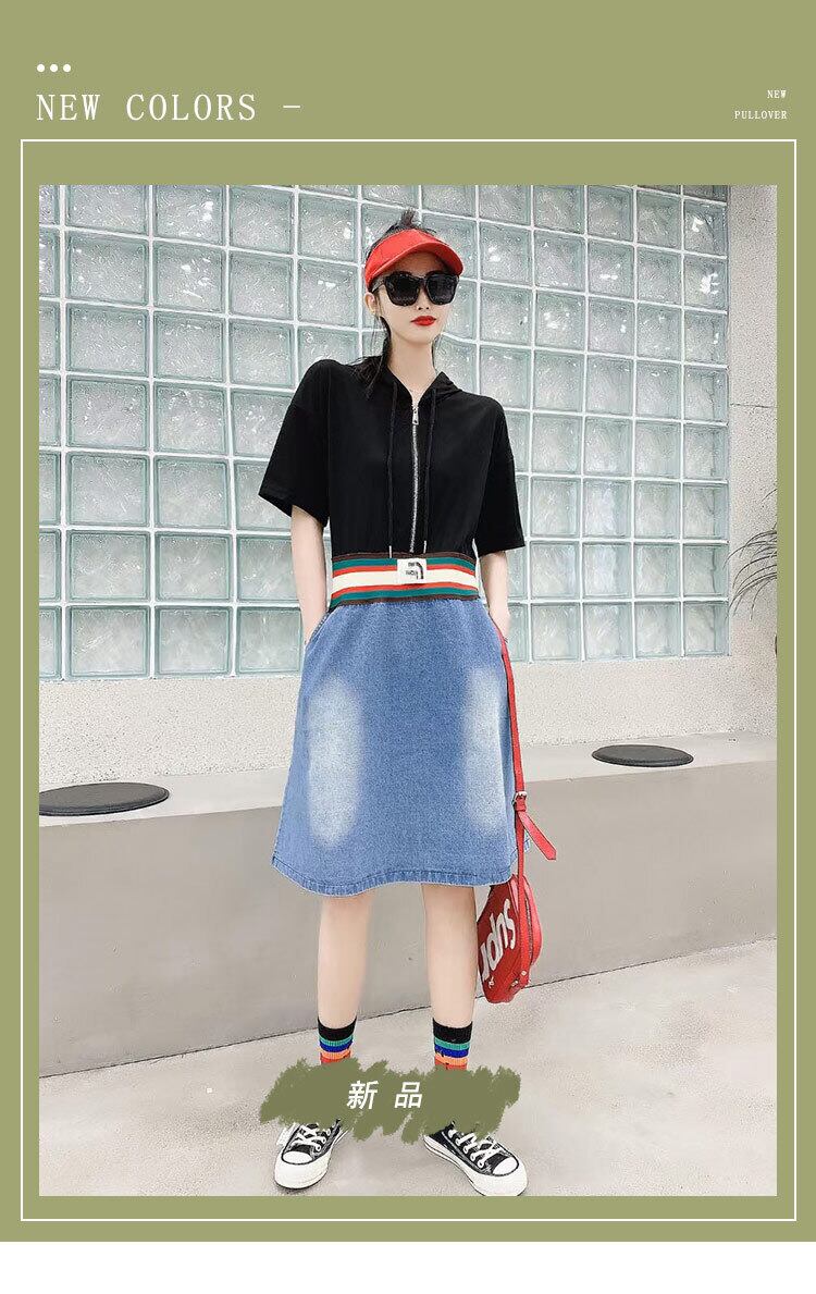 サマールーズフードジッパー薄手ドレス 大きめサイズ 夏物 ヨーロピアン ステッチ ミックスインファッション17448686464