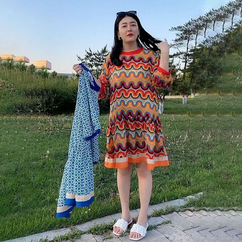 サマードレス 薄手ラウンドネックルーズパンツ 大きめサイズ 夏物 Oネック ミックスインファッション70241869760