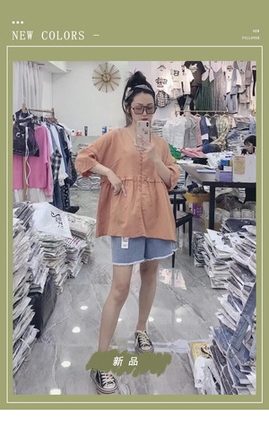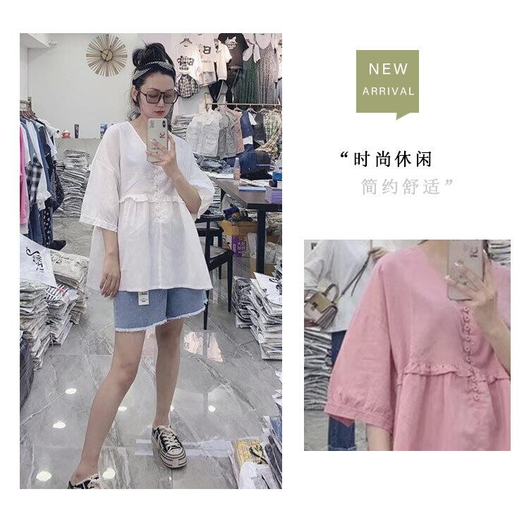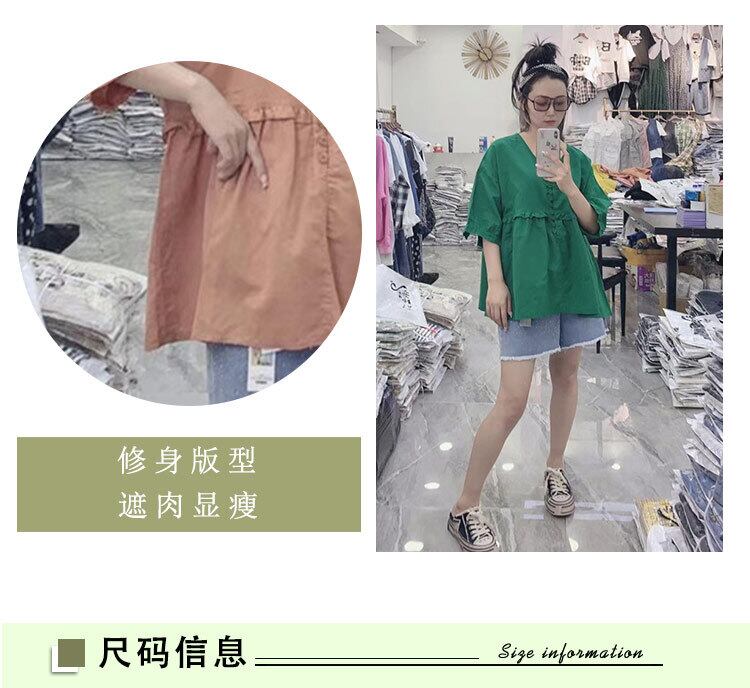 サマースタイルVネックルーズカジュアルトップス 大きめサイズ 夏物 ミックスインファッション66917238076