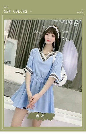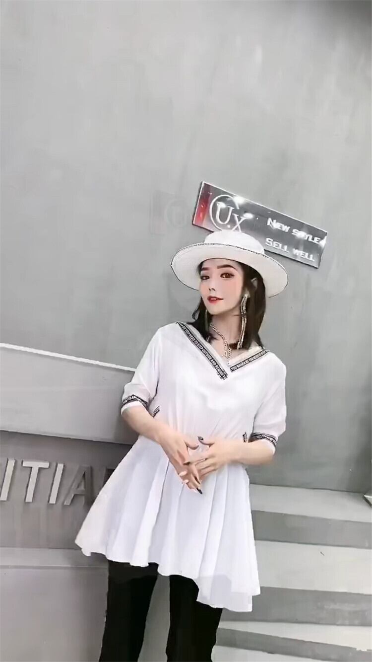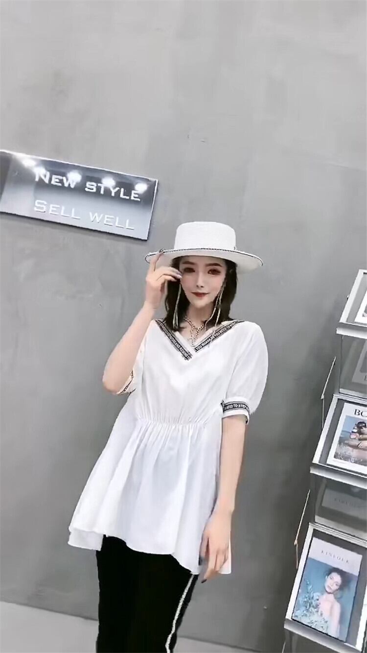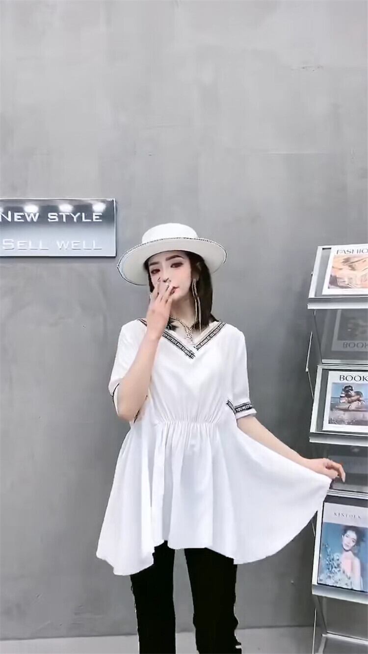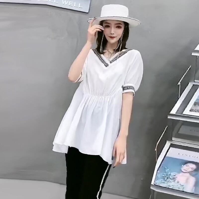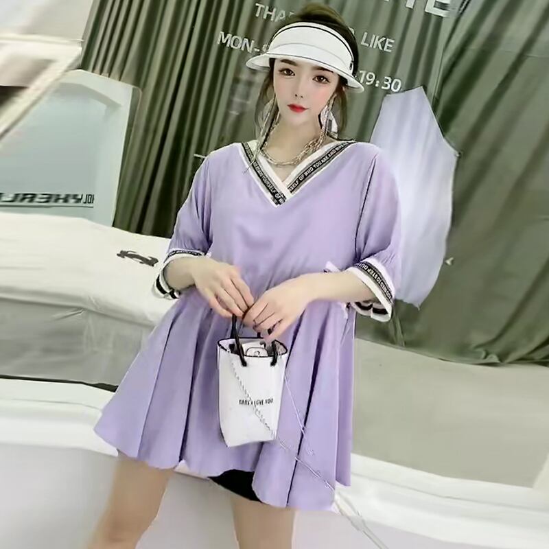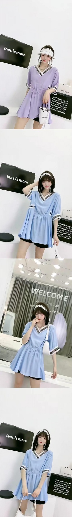 Vネックストレッチウェストシフォントップス サマースタイル エラスティック 伸縮 大きめサイズ 夏物 ミックスインファッション39400232389